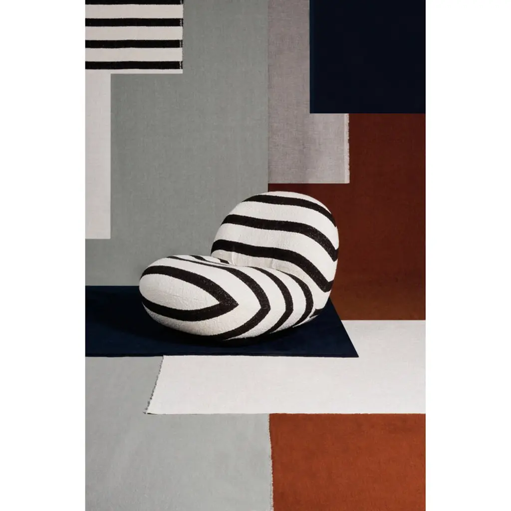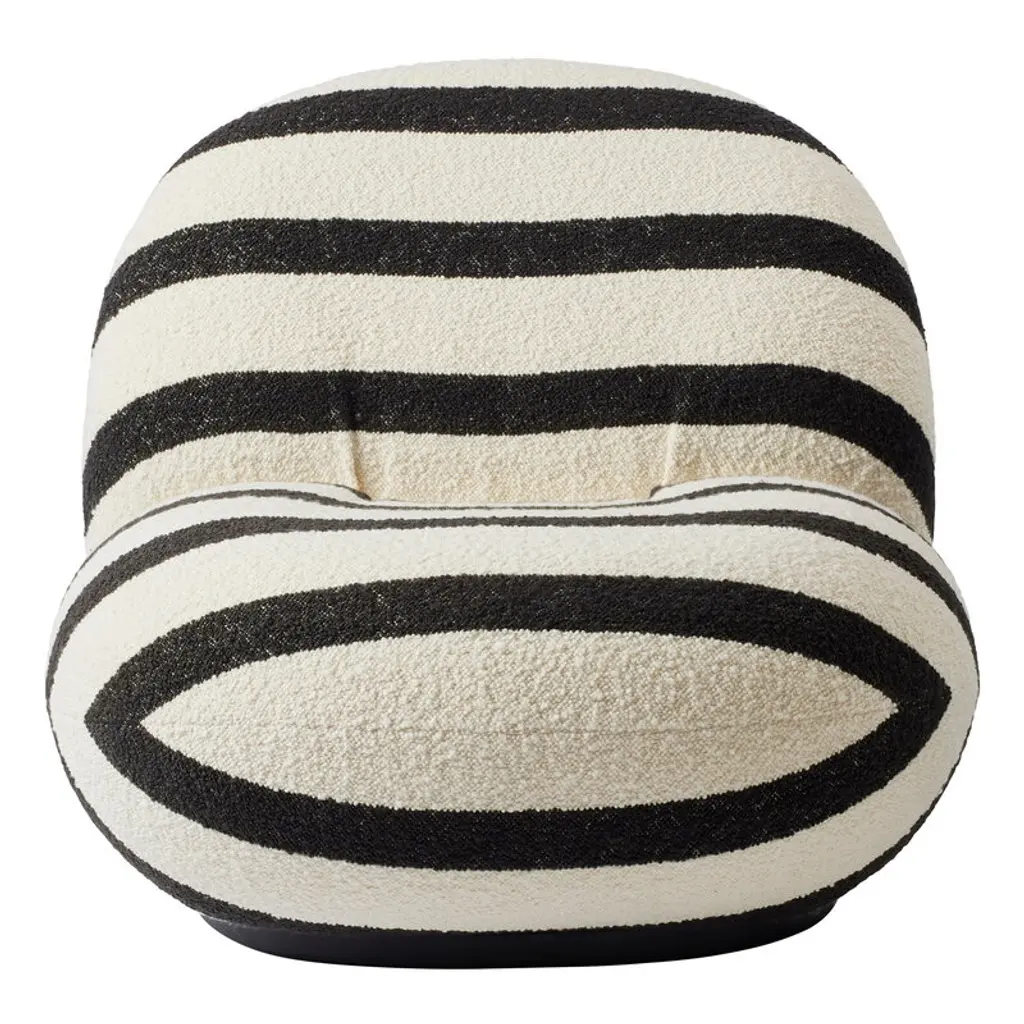 GUBI’s Pacha lounge chair, complete with a swivel base, is a delightful design classic by Pierre Paulin from 1975. Paulin was a pioneer in legless, low-level furniture – his aim was to bring people closer to the floor and utilize the floor surface in new, versatile ways. This chair features a swivel base complete with a return function that automatically turns the seat to its proper position. The generous, soft design of the lounge chair guarantees relaxed, comfortable seating, and the friendly, clean-lined silhouette suits many types of interiors. Besides being a fine example of the design of its own era, Pacha is also a timeless classic that has maintained its fresh character throughout the decades. The modern look is further enhanced by the stylish black and white upholstery.