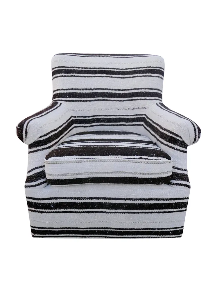 Pacha Lounge Chair, Swivel Base, Karakorum Stripe Black & White - Black