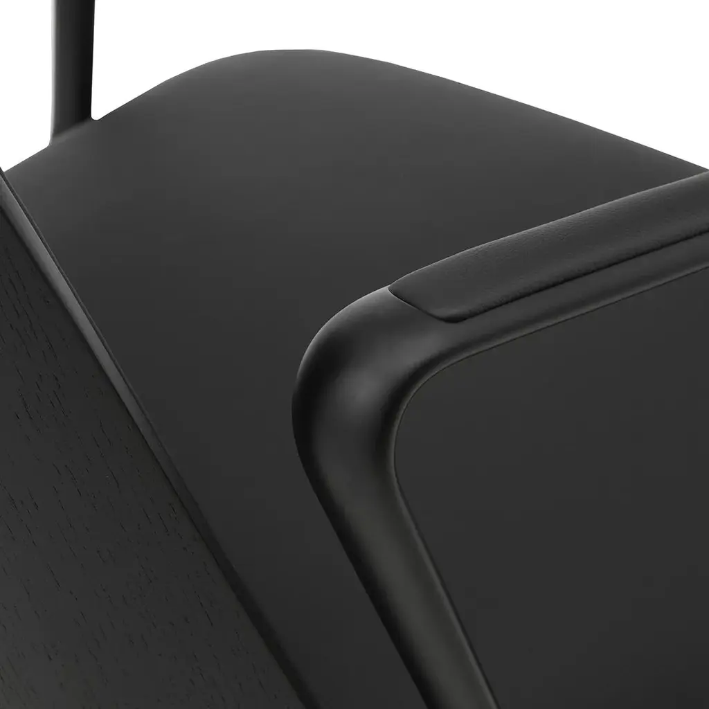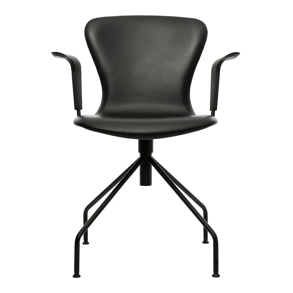 Pad Chair Swivel consists of a shell made of lacquered oak veneer or painted ash veneer with molded PU foam and front upholstery. Inside the upholstery and PU foam, the chair has a steel reinforcement structure. The swivel base is made of polished or black powder coated aluminum. Tilt function with inclination from 6.5° to 16.5°. Pad is delivered assembled.