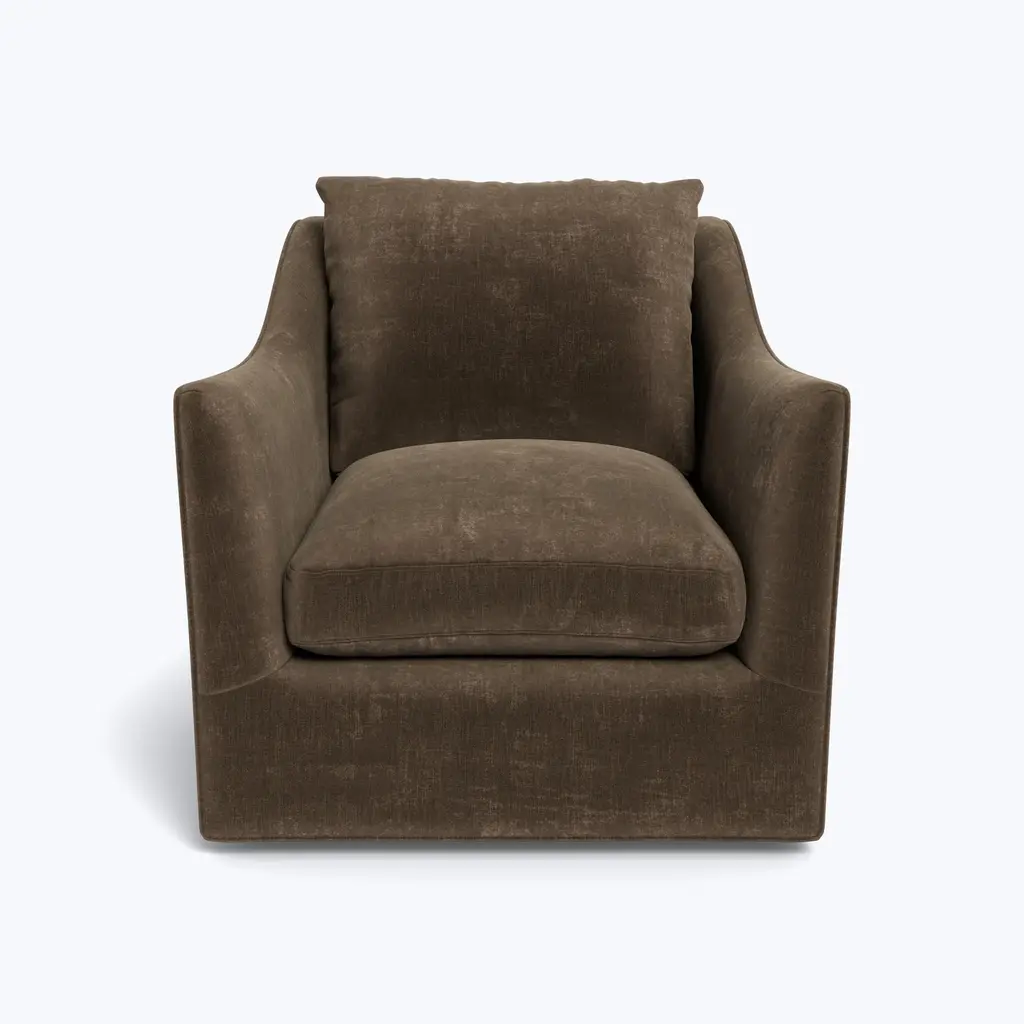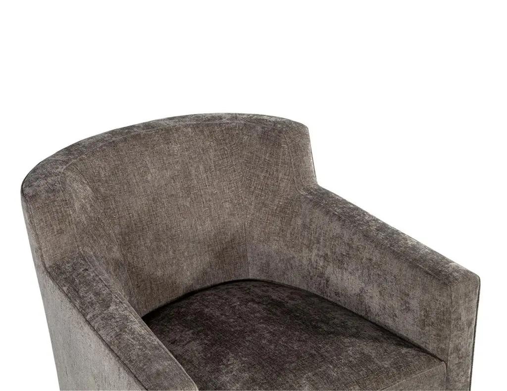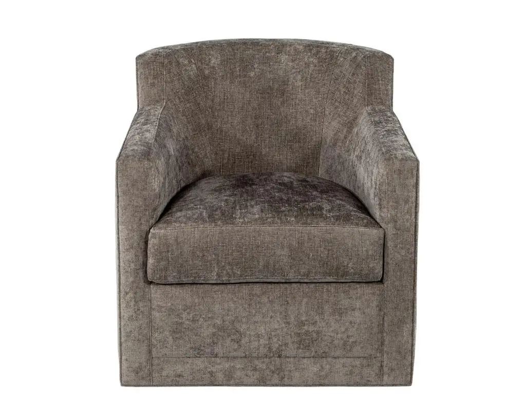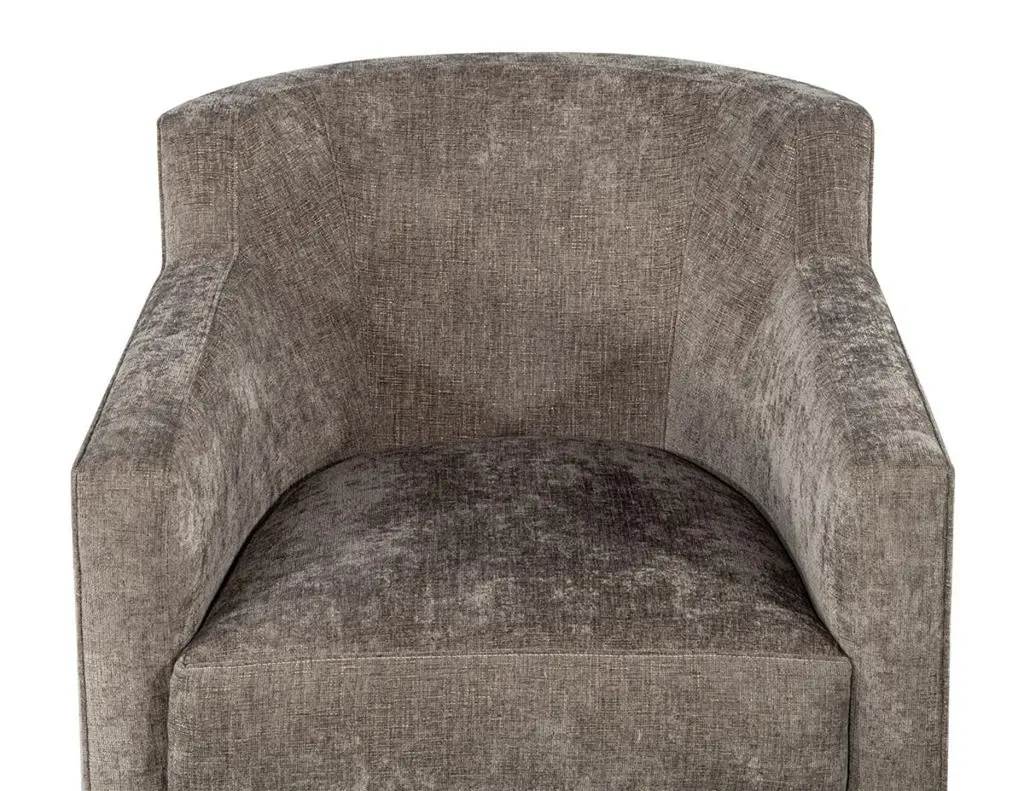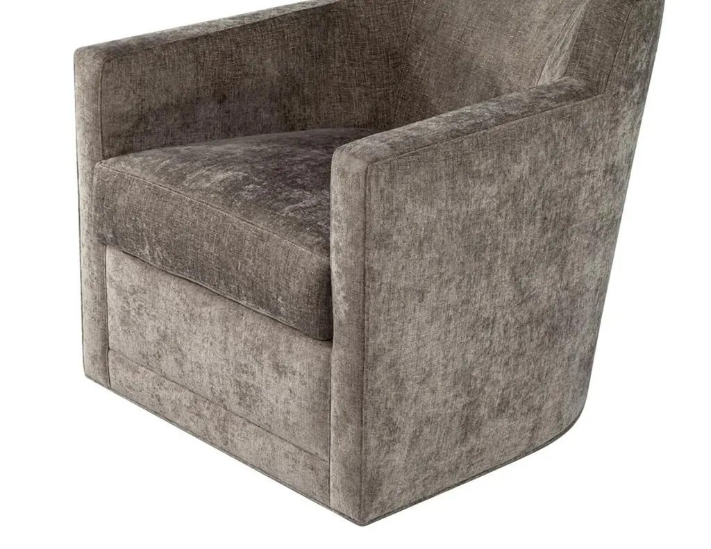 This pair of modern swivel lounge chairs is truly a sight to behold. Featuring clean lines and a modern design, these chairs will elevate any space. Ideal for a living room, den, or bedroom, these chairs will provide comfort and style. Not only do they swivel, but they also have thick seat cushions and a soft luxurious fabric. Not only will these chairs look great in any home, but they are also made in Canada for quality you can trust. Enjoy an added level of comfort and style with this stylish pair of swivel lounge chairs.Price includes complimentary scheduled curb side shipping service within the continental USA.