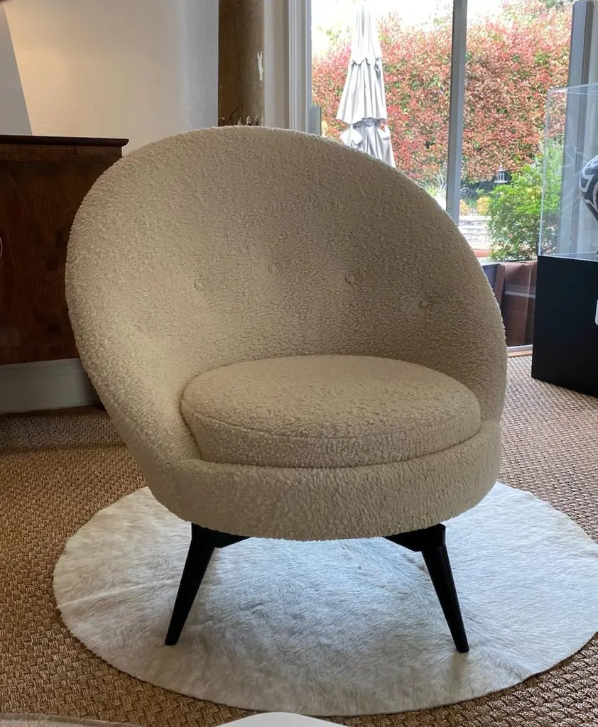 Pair Of Swivel Lounge Chairs In Ivory Bouclé By Adm Bespoke