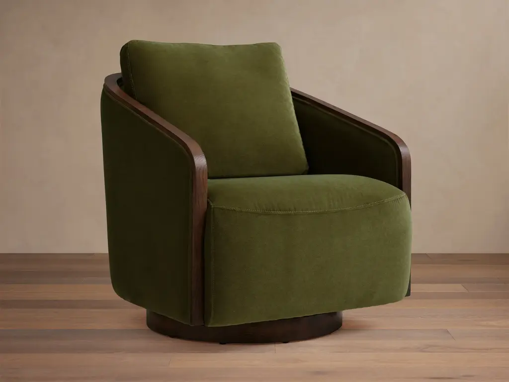 Looking for luxury on a budget? Introducing the Paolo Swivel Chair, designed with a solid wood frame for unmatched durability and a polished, modern aesthetic. Choose from plush Upcycled Distressed Velvet, made from recycled plastic bottles, or Textured Weave fabric, both paired with a taut-strap, open and airy back for a stylish look that keeps your space feeling breezy. This chair features high resiliency foam and a fiber pillow for superior comfort, topped off with swivel functionality.