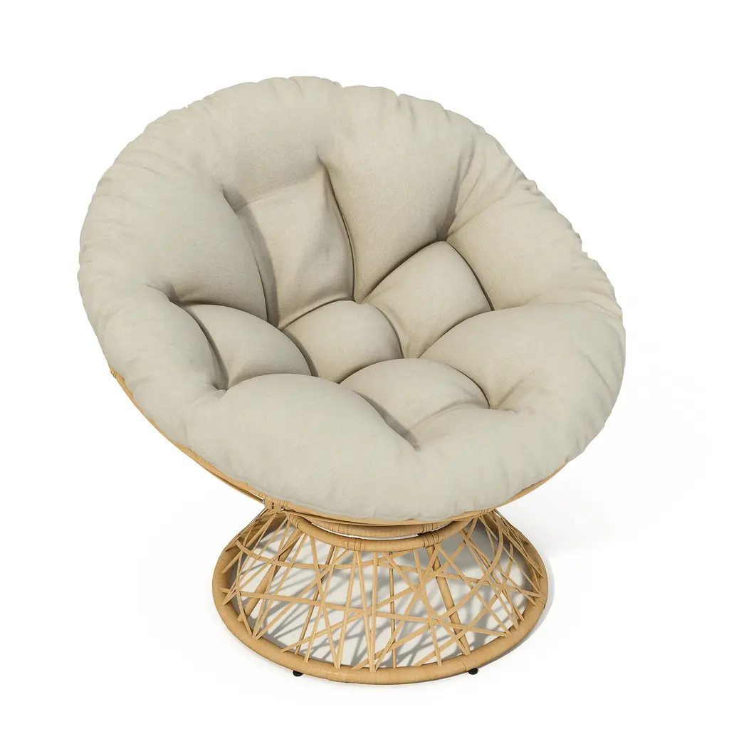 Papasan Wicker Chair With Fabric Cushion And 360 Degree Swivel - 40" / Tan