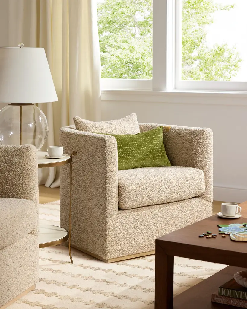 Set the curve. A rounded back pairs with clean lines for an updated take on early 20th century design.