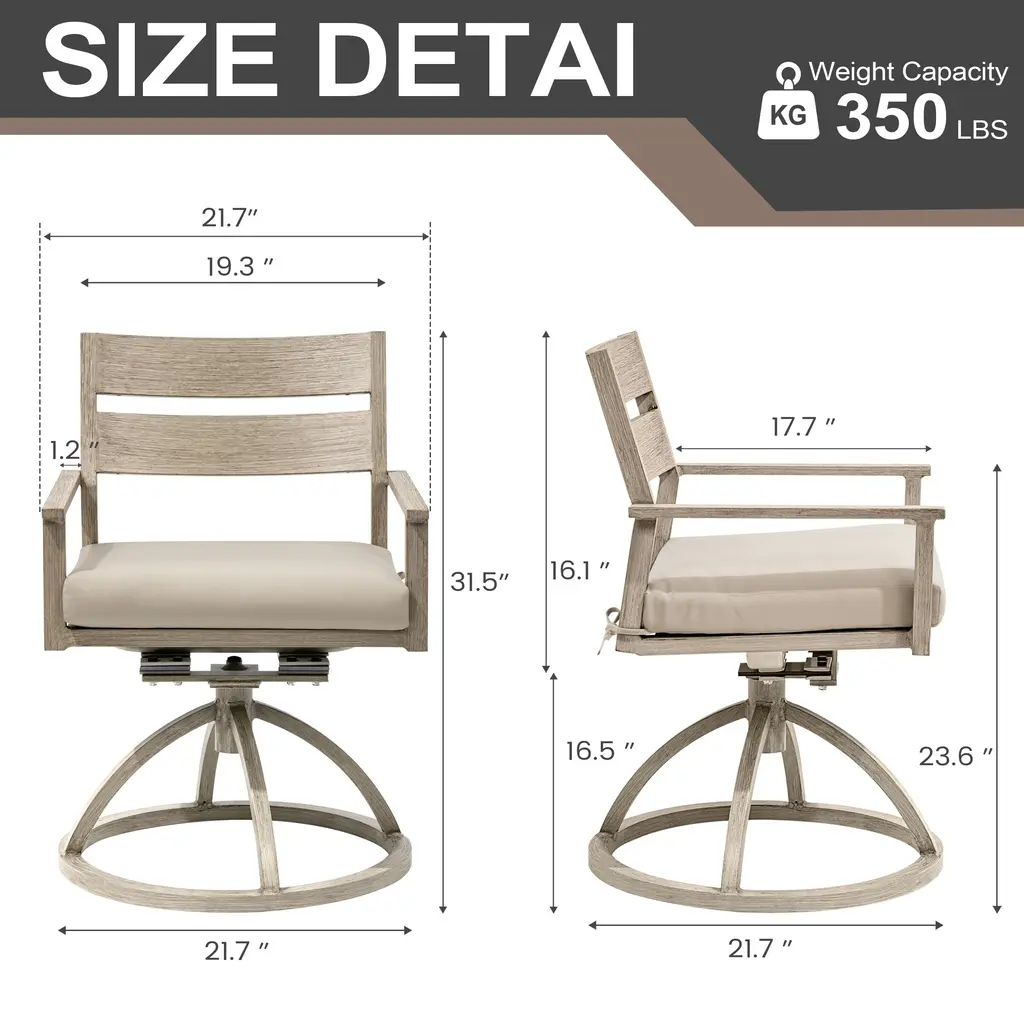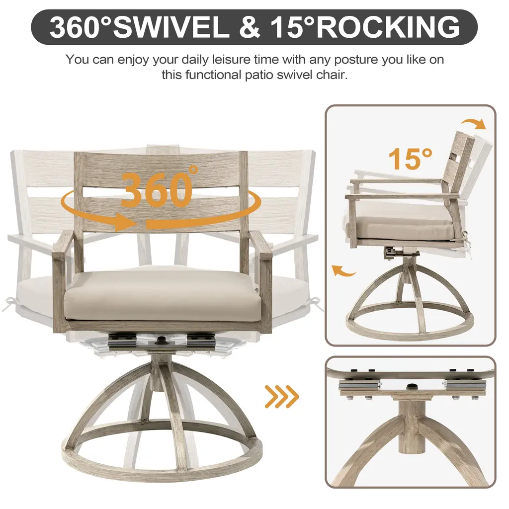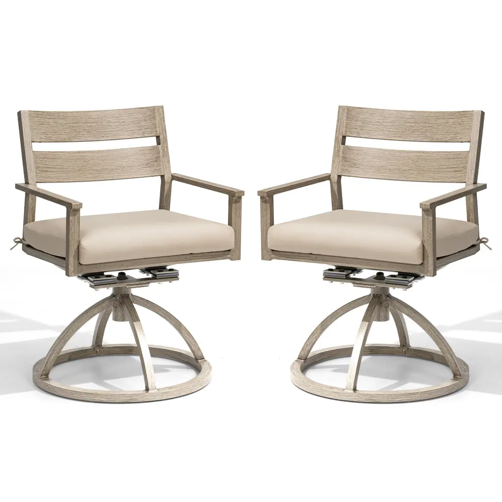 Patio Swivel Aluminum Woodgrain Dining Chair With Sunbrella Cushion - Canvasantiquebeige-Setof2