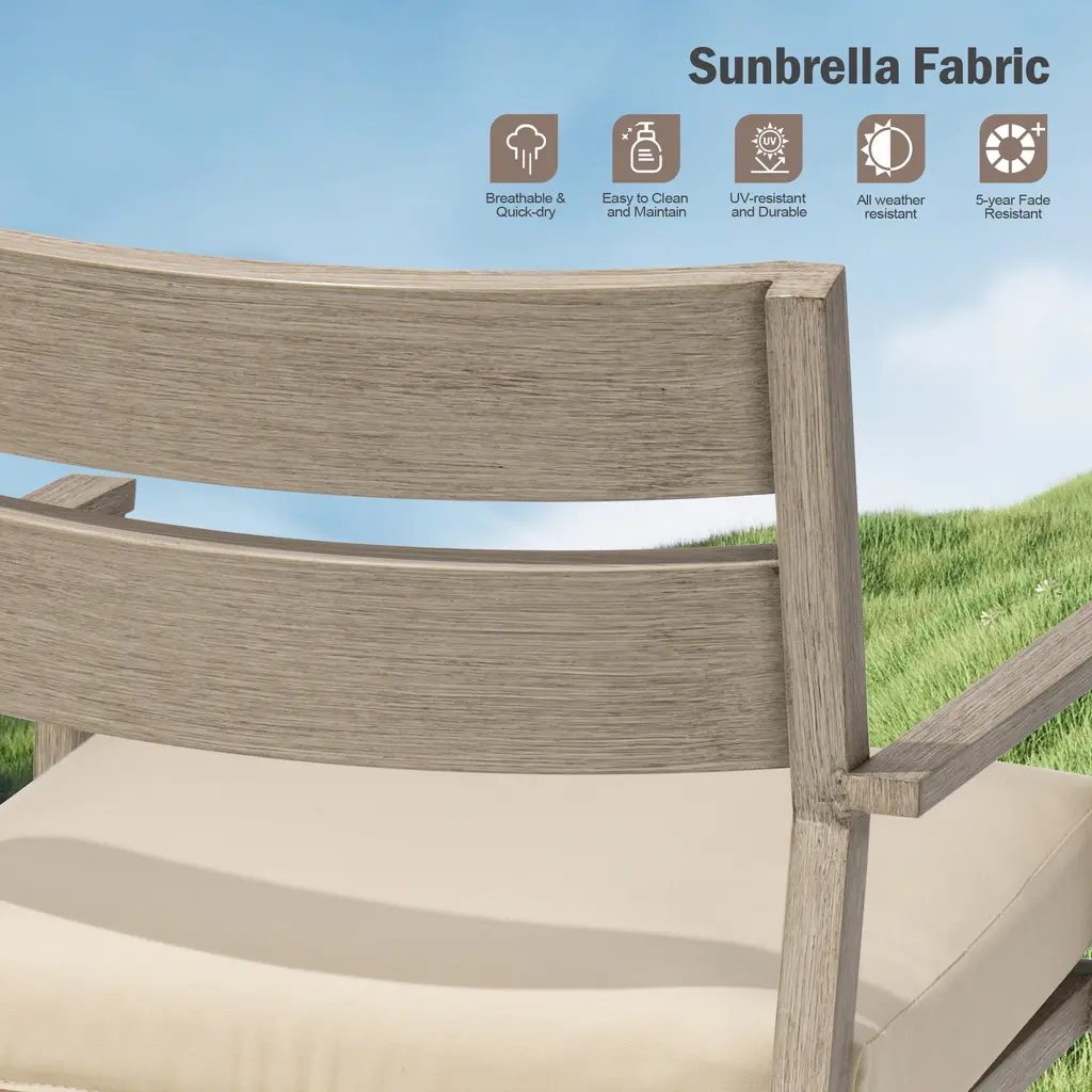 This aluminum swivel dining chair comes with Sunbrella cushions for a softer, more comfortable seat. The surface has a wood grain for a more natural look. The base and backrest are ergonomically designed for comfort and safety. The dining chair is easy to install and is a good choice for outdoor living. Perfect for any outdoor space including patio, lawn, garden, porch, outdoor balcony, around the pool or indoors.Features:Dimensions:Notes: