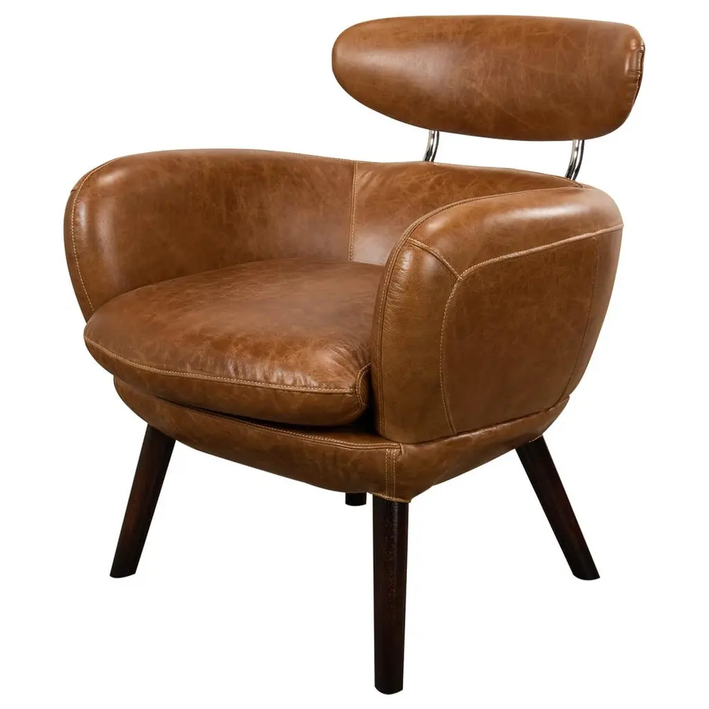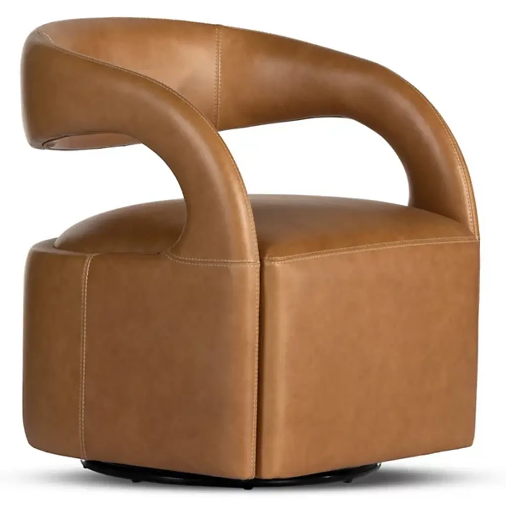 Pelè Hand-Patinated Light Brown Crust Leather Swivel Armchair