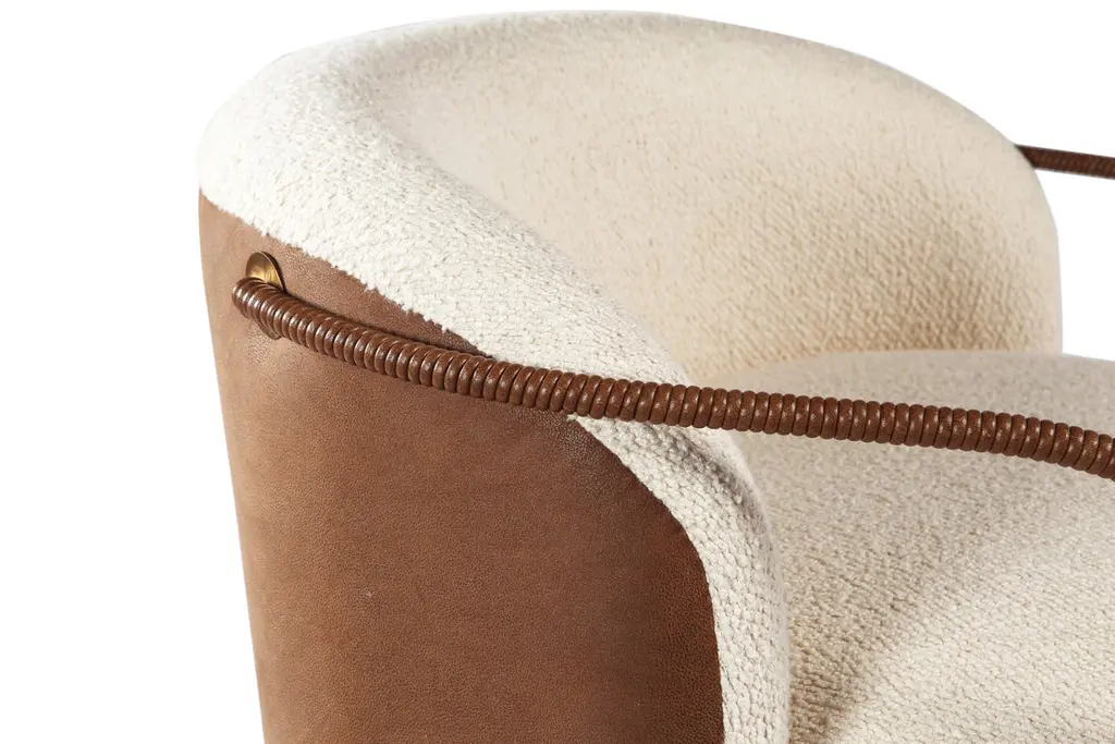 "Pietra" Curved Swivel Armchair Upholstered In Bouclé Fabric With Leather Arms