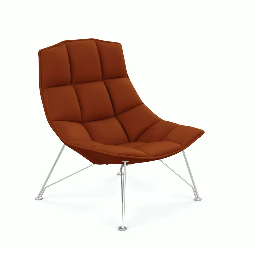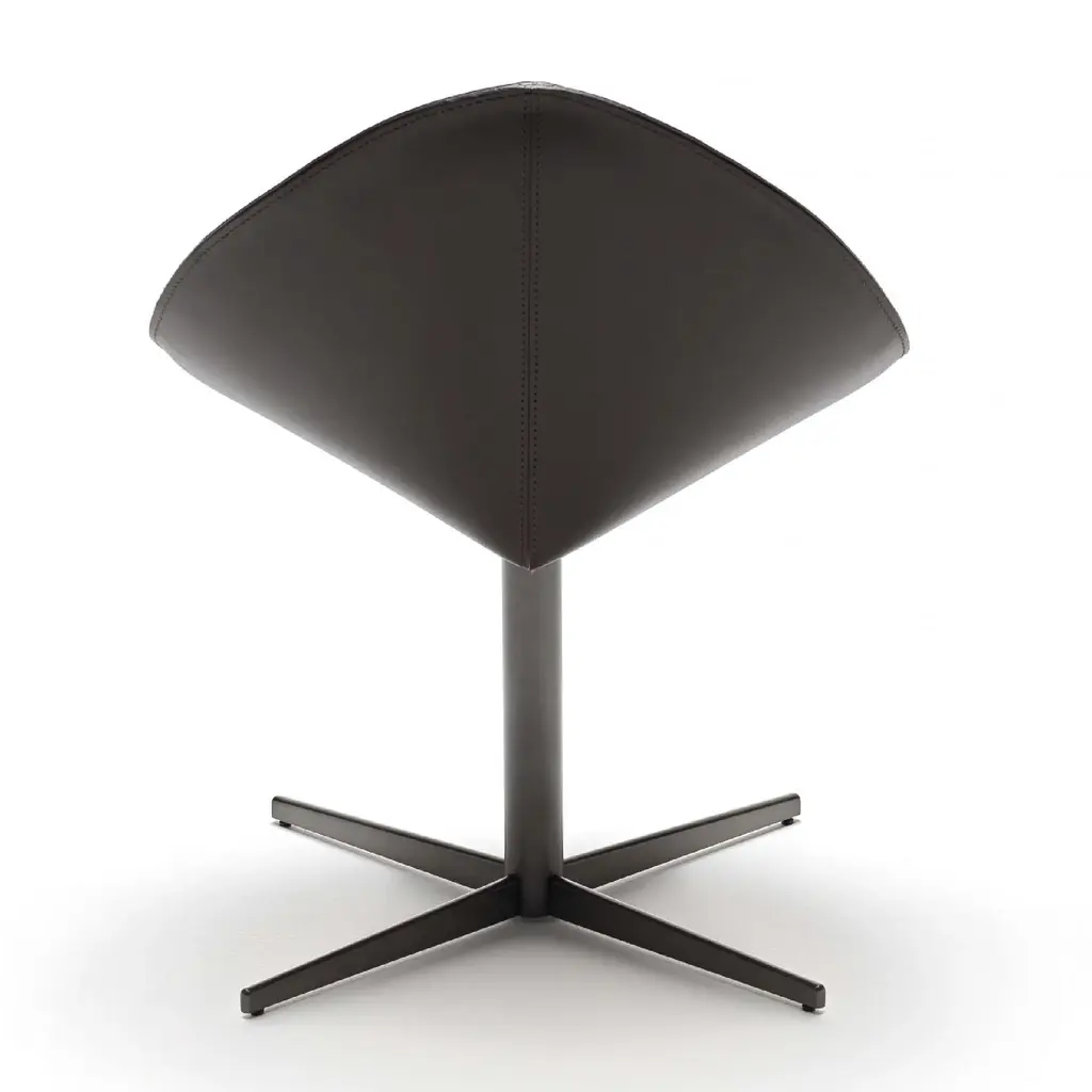 The Fiorile Plisse BC is a dining chair with a cross base, featuring a swivel design and fixed height, constructed from steel in various finishes. The seat and backrest shell is made of slightly padded steel sheet, internally upholstered in pleated premium leather and externally in full-grain leather or contrasting premium leather. The chair showcases elegance and ergonomics in a unique piece, entirely handcrafted. It is ideal for dining rooms and representative settings.
