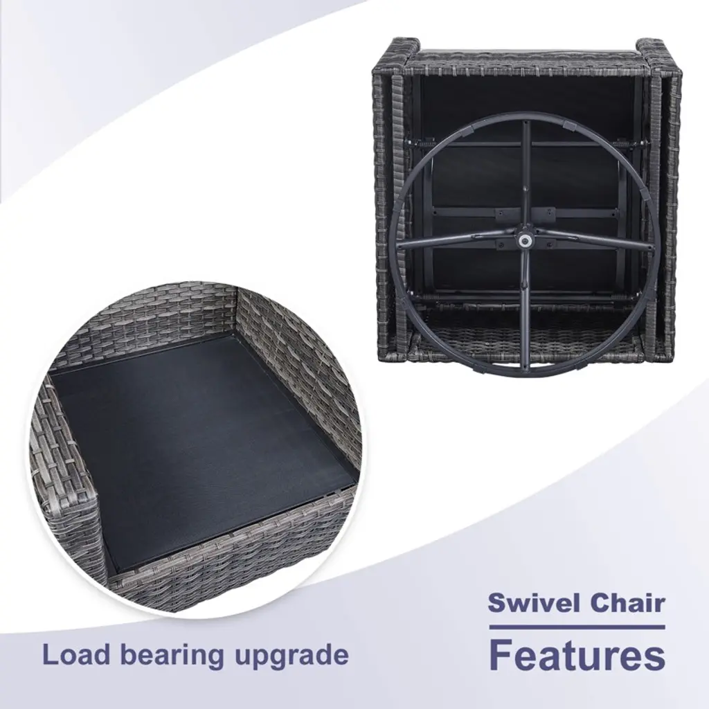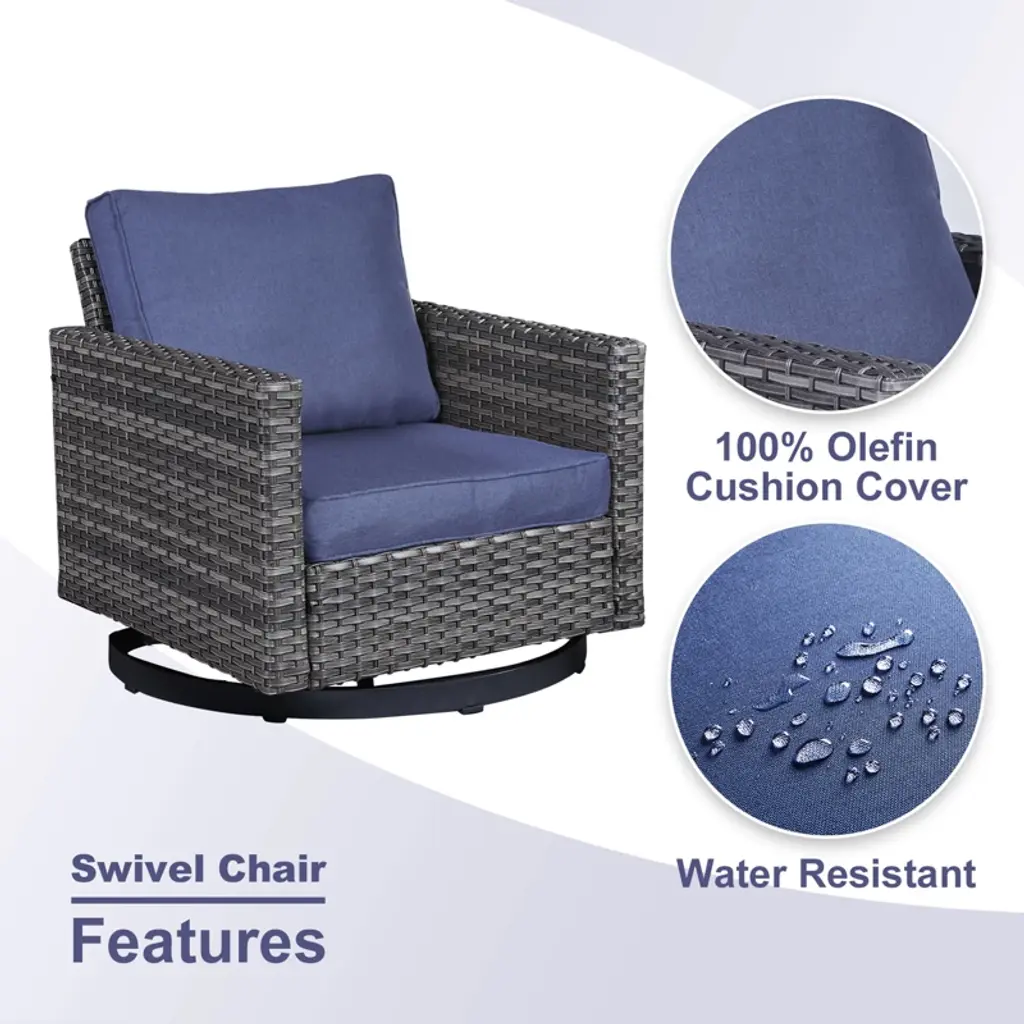 Pocassy 8 Piece Outdoor Sectional Patio Furniture Set, All Weather Gray Wicker Outdoor Furniture Set With Swivel Chair And 41" Propane Fire Pit