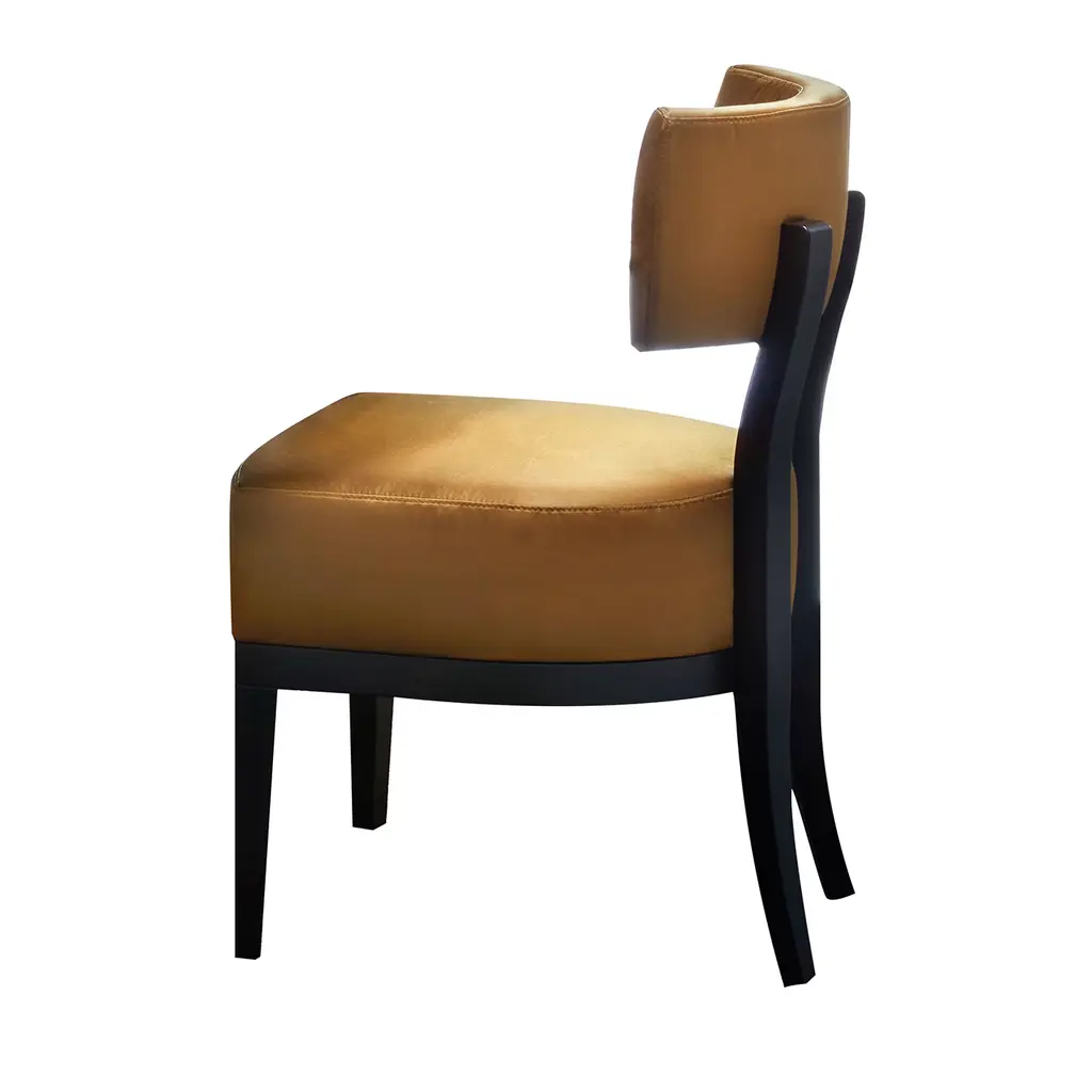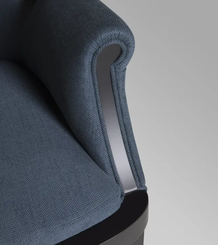 President is an armchair made of cherry wood with upholstered frame and shaped armrests.The PRESIDENT armchair is an important office swivel chair, with a wooden frame placed on a steel base with wheels and a shock absorber and adjustable in height. As a new model in the Biedermeier collection, the particular shape of its armrests and its back characterize the PRESIDENT. Elegant in all its details.