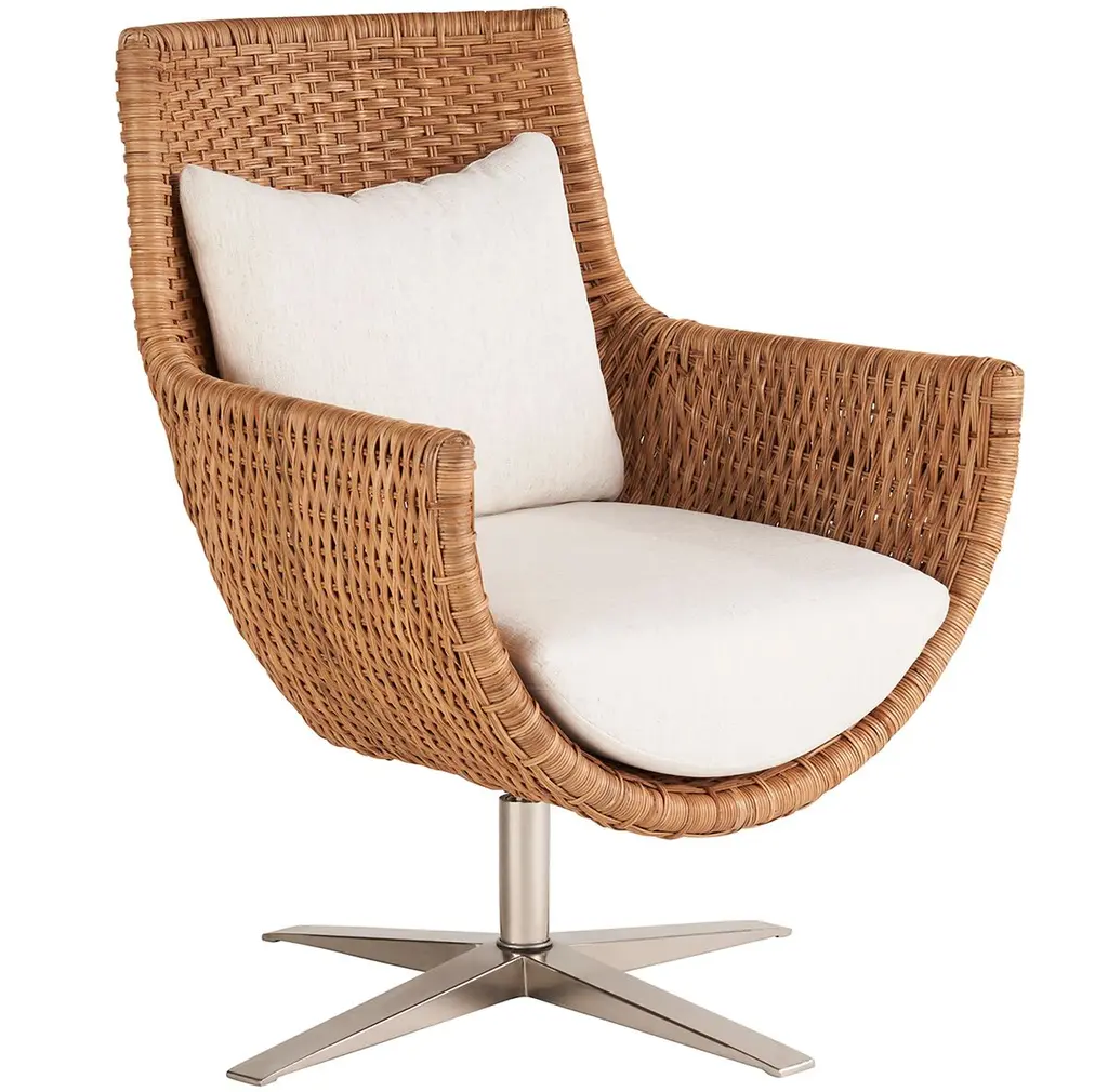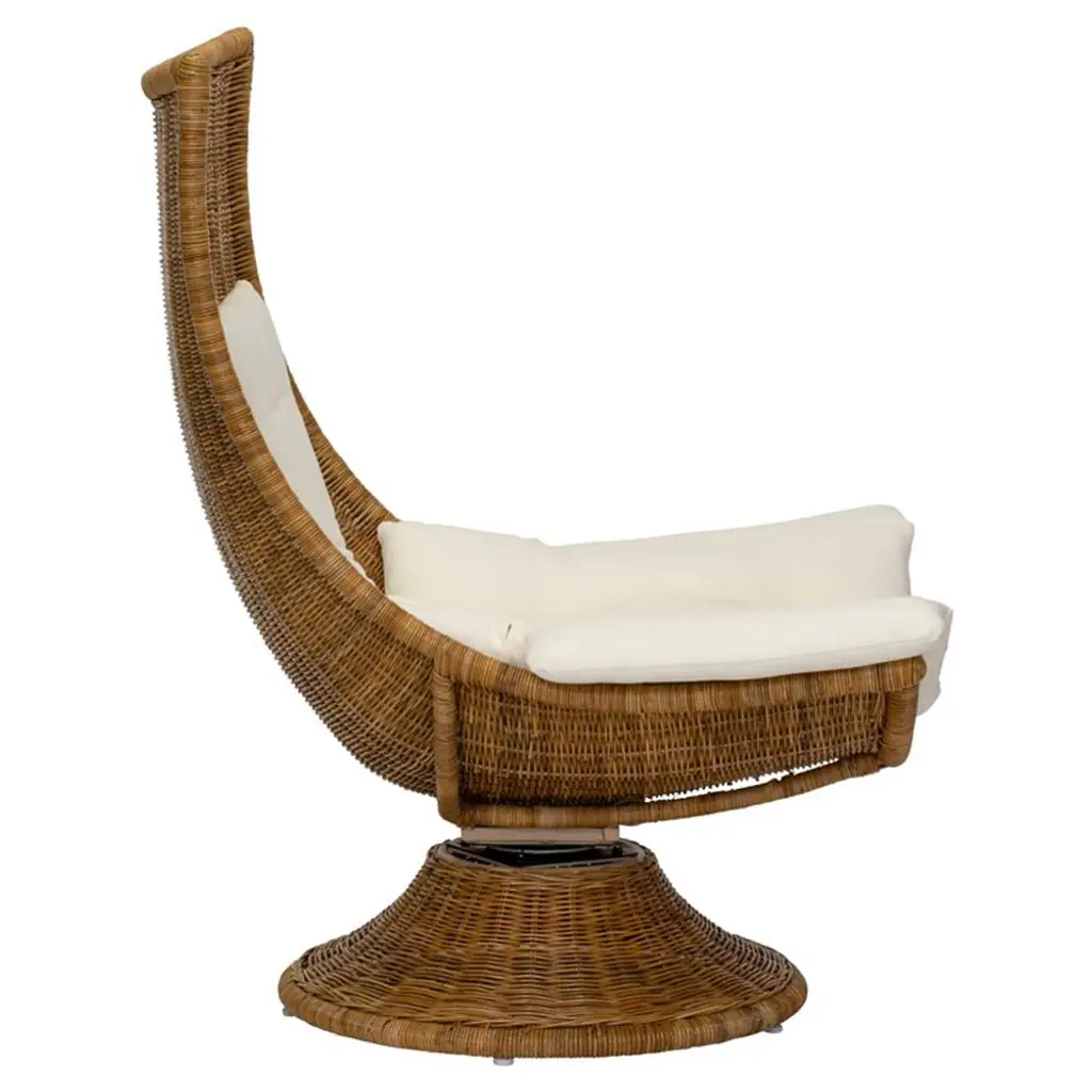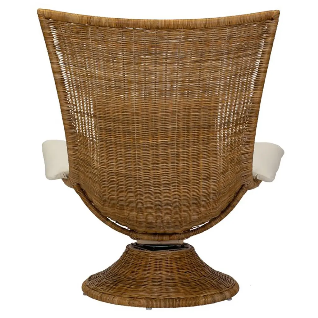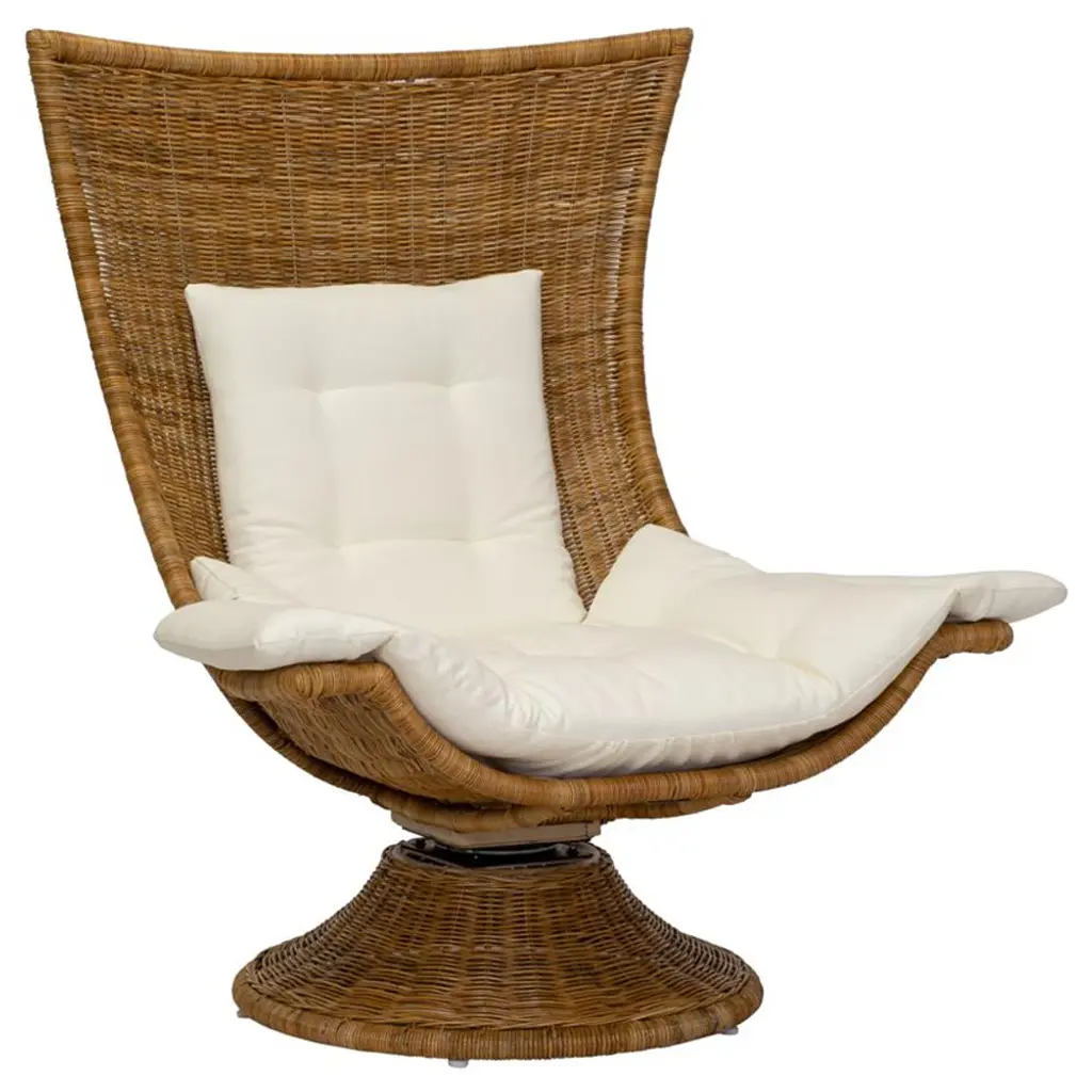 Quinn Coastal Rattan White Upholstered Swivel Chair With Cushion