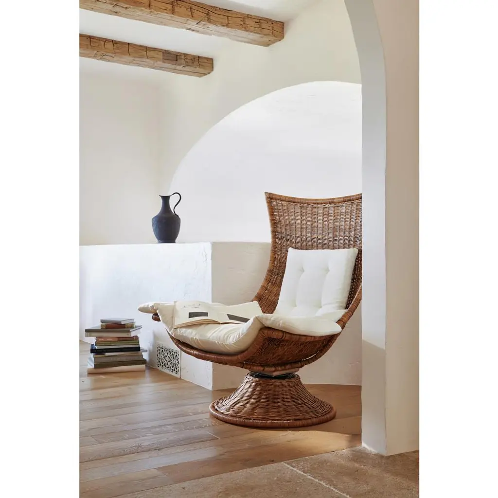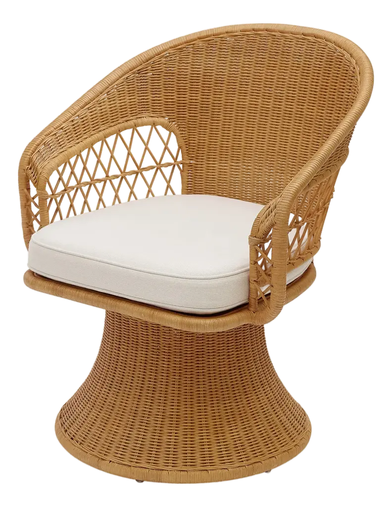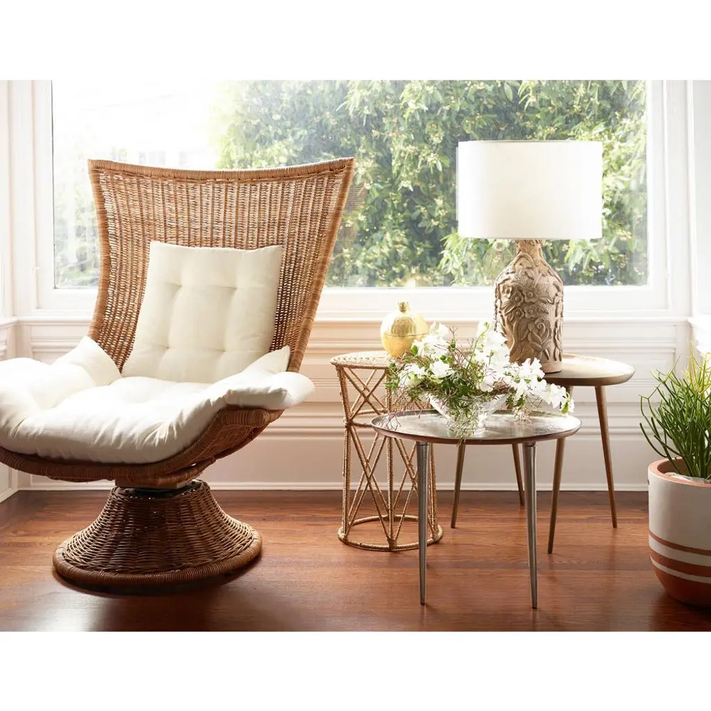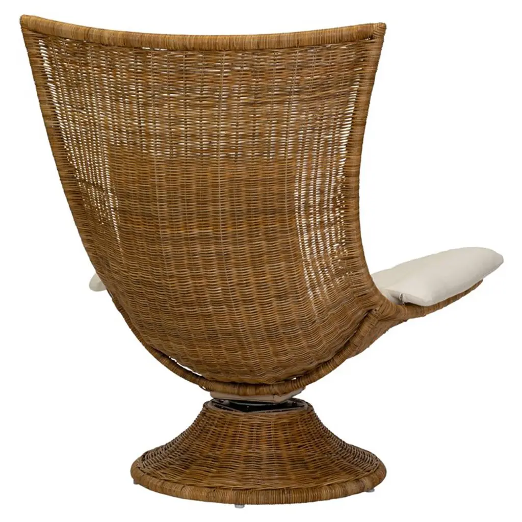 Quinn Coastal Rattan White Upholstered Swivel Chair With Cushion
