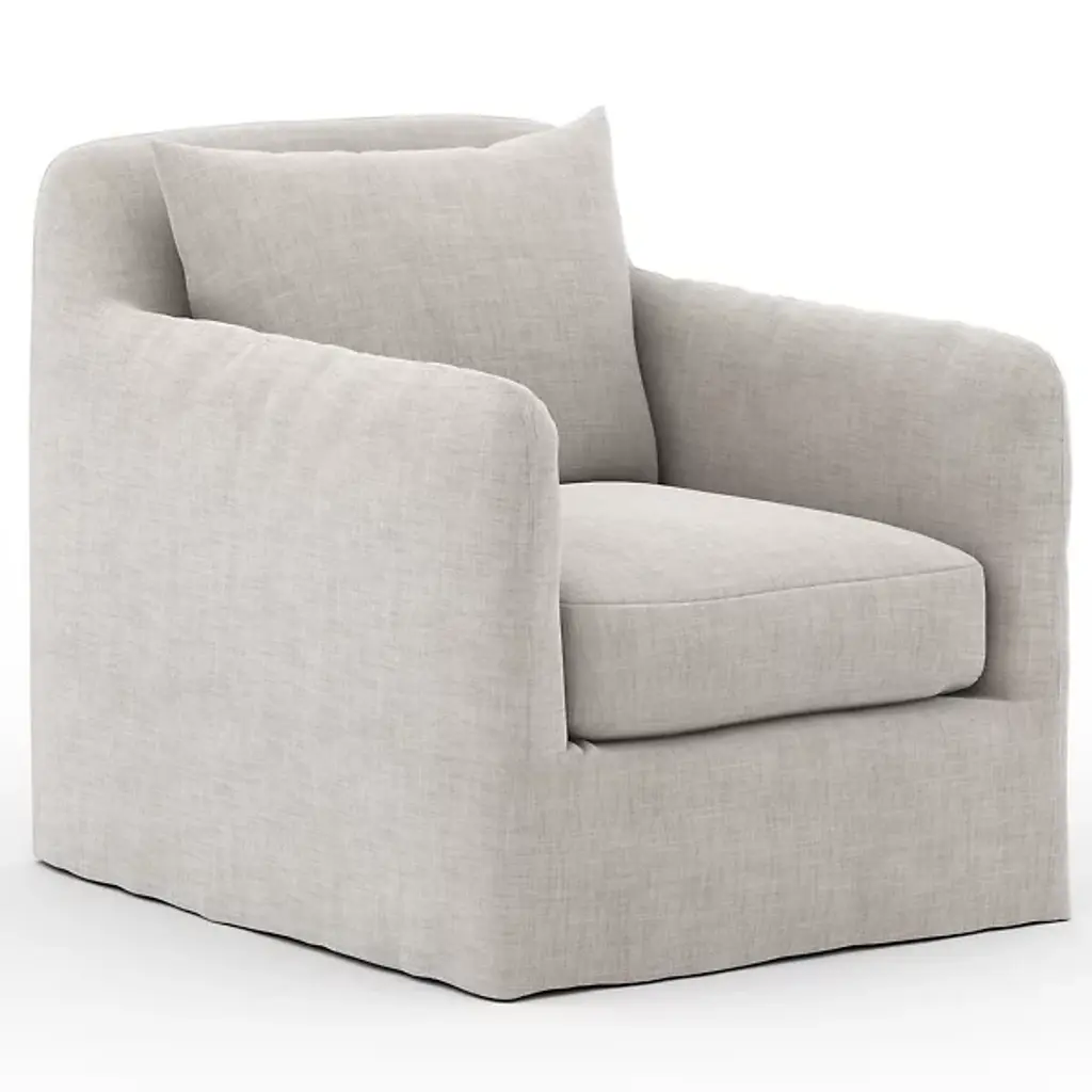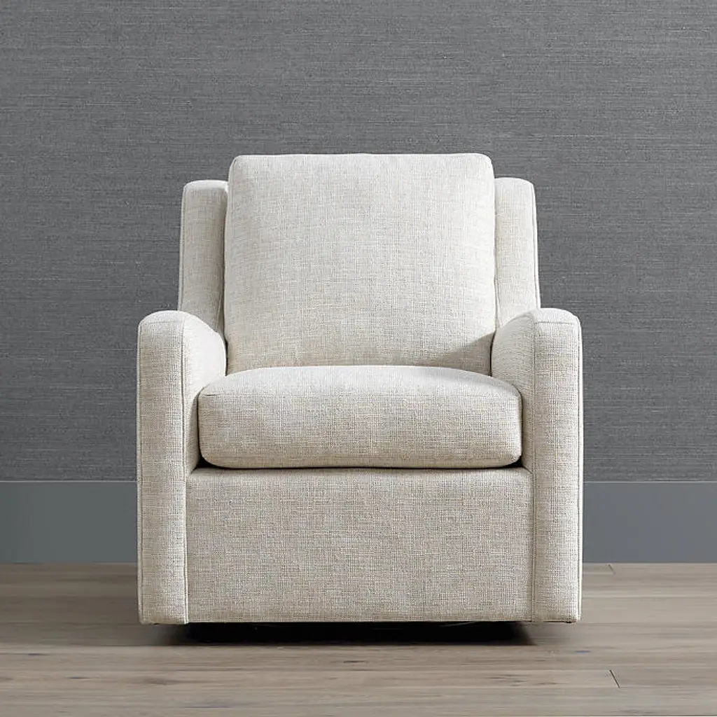 Balancing modern design with classic elements, our Quinnton Swivel Chair was designed with luxury in mind. Featuring feather blend cushions held by its bench-made frame, the swivel chair is both sophisticated and inviting. The chair is customizable in a wide array of fabrics, allowing you to personalize your space.