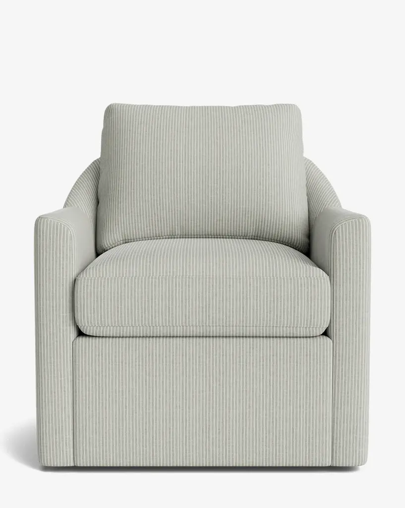 Balancing modern design with classic elements, our Quinnton Swivel Chair was designed with luxury in mind. Featuring feather blend cushions held by its bench-made frame, the swivel chair is both sophisticated and inviting. The chair is customizable in a wide array of fabrics, allowing you to personalize your space.