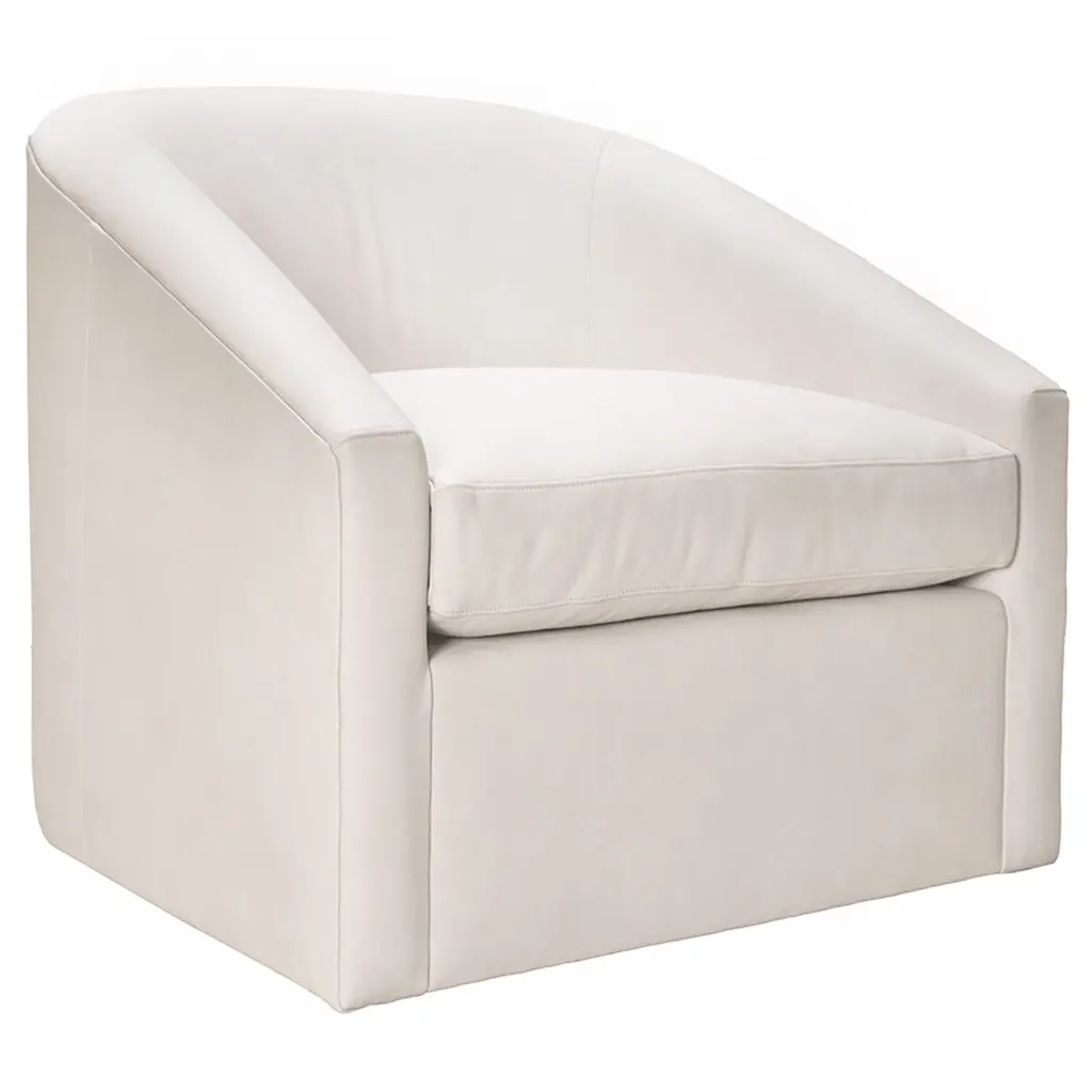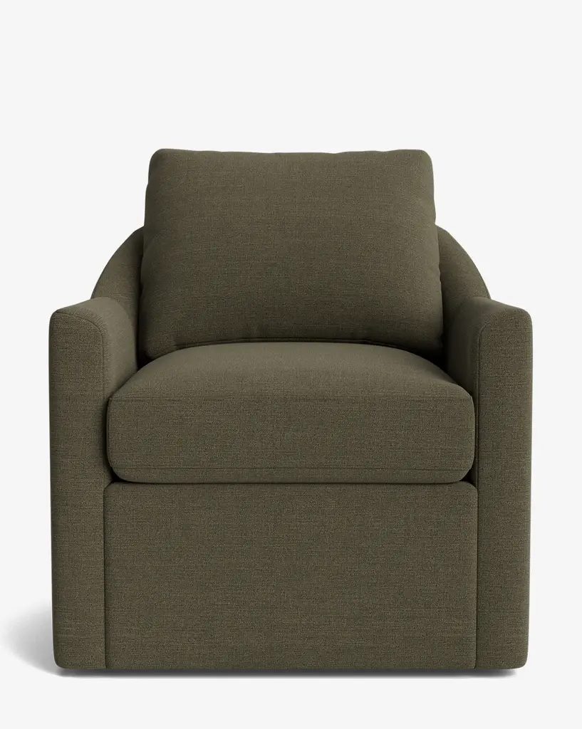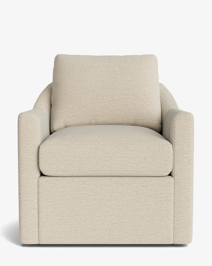 Balancing modern design with classic elements, our Quinnton Swivel Chair was designed with luxury in mind. Featuring feather blend cushions held by its bench-made frame, the swivel chair is both sophisticated and inviting. The chair is customizable in a wide array of fabrics, allowing you to personalize your space.