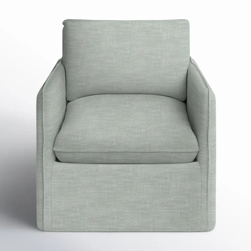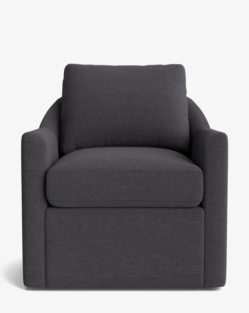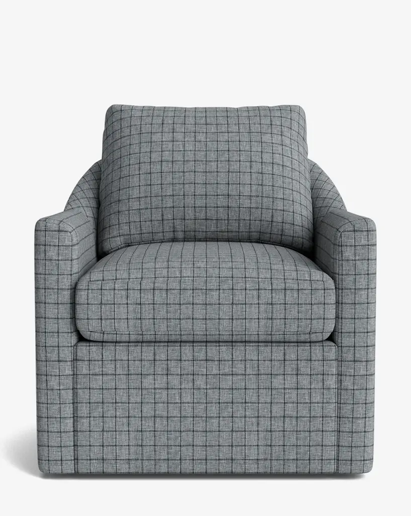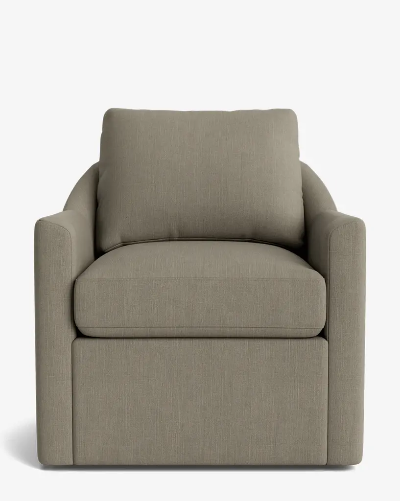 Balancing modern design with classic elements, our Quinnton Swivel Chair was designed with luxury in mind. Featuring feather blend cushions held by its bench-made frame, the swivel chair is both sophisticated and inviting. The chair is customizable in a wide array of fabrics, allowing you to personalize your space.