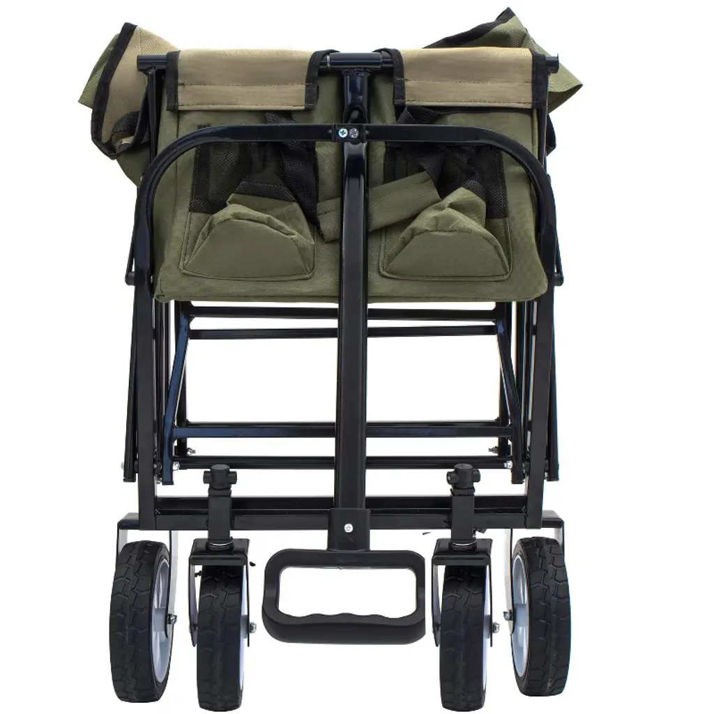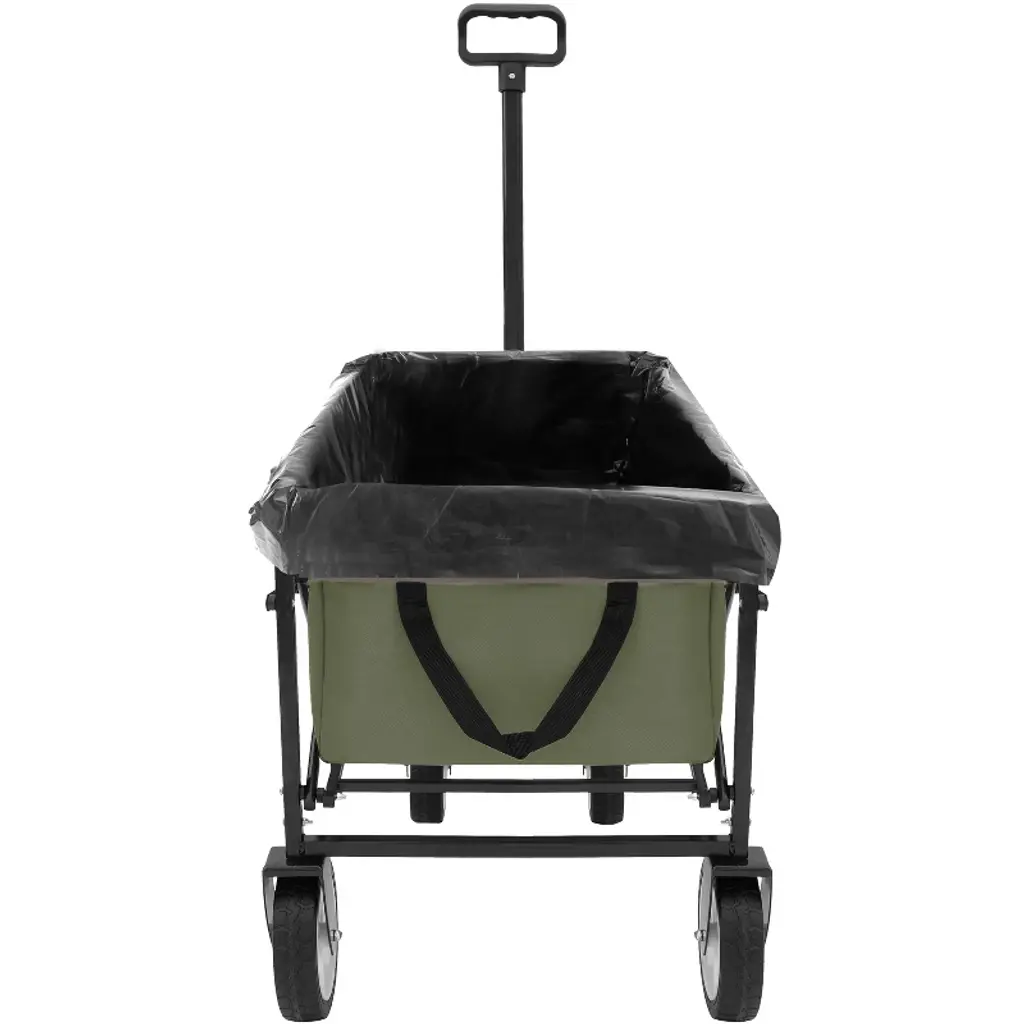 Racxily Collapsible Wagon Cart With Wheels Foldable, 3Pcs Plastic Liner Bag, Heavy Duty Utility Wagon Grocery Carts, Army Green