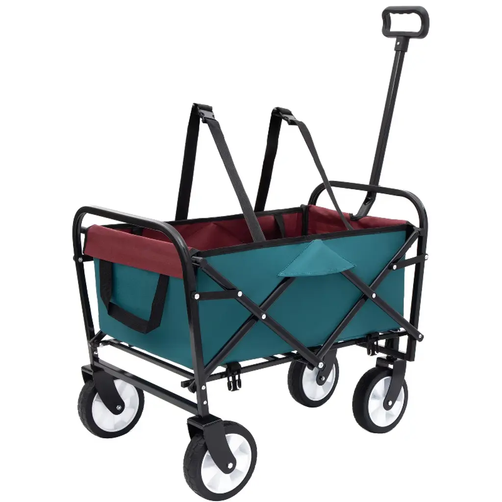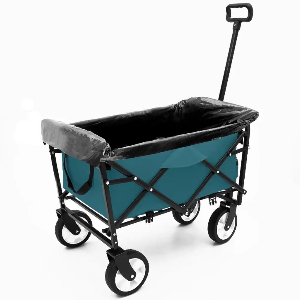 Tired of juggling beach gear, groceries, or garden supplies? This awesome collapsible wagon cart is your new best friend! Seriously, haul anything, anywhere, anytime. Slip on the included 3-piece waterproof liner set (super easy!) to keep sand, dirt, and mud contained inside and off your cart ¨C perfect for messy trips. Need to carry taller stuff? Use the clever strapping system to lock down coolers, chairs, or bags securely. It packs a punch with its super sturdy, rust-proof frame but stays surprisingly light (only 13.5 lbs!) and folds down flat in seconds to stash anywhere ¨C trunk, closet, garage, you name it. The big 7-inch wheels glide like butter over sand, grass, gravel, or pavement thanks to the 360-degree swivel. Plus, that fresh cyan two-tone style looks sharp whether you're at the campground, farmer's market, or just doing yard work. Grab life's adventures (and your stuff!) easier than ever. Bonus: keeps your cart looking new!