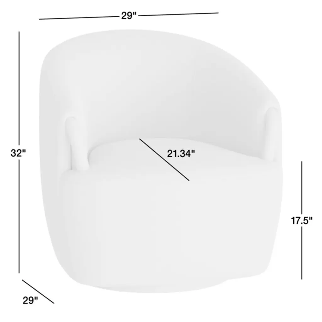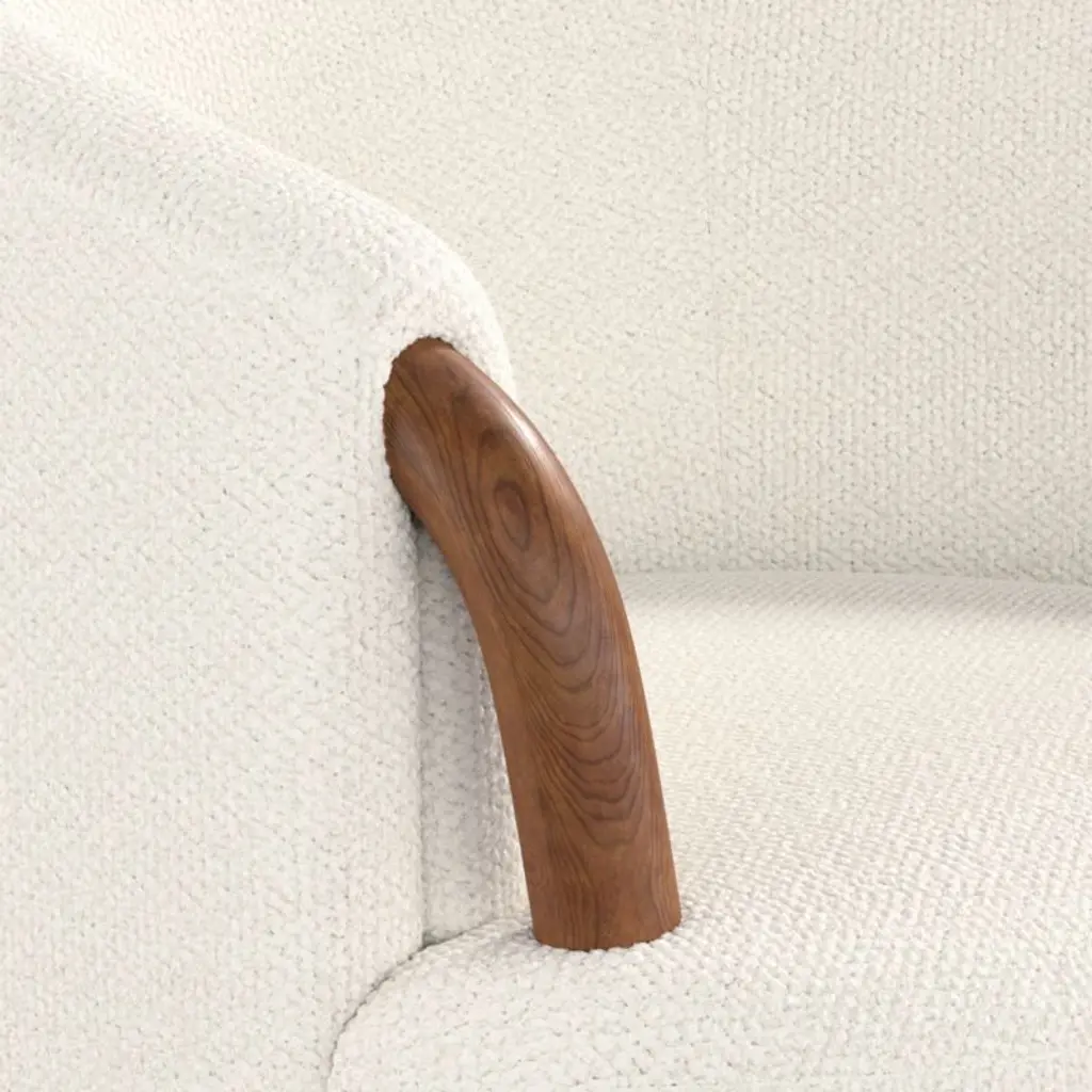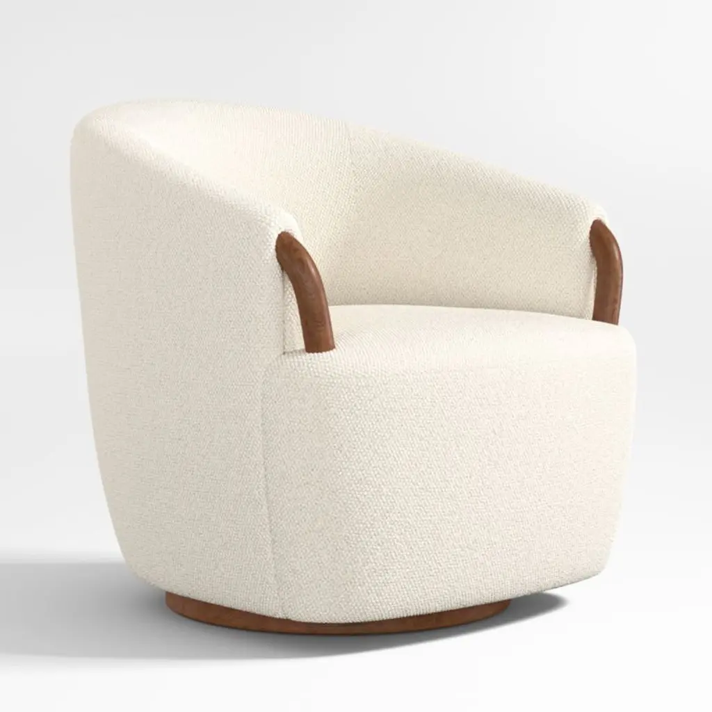 Rapello's embracing contours imbue modern minimalism with luxury, comfort and the relaxed ease of a swivel chair. Tight styling gives a seamless look accentuating the illusion that the back is draping over the exposed oak arms. A nubby ivory weave makes the most of the chair's sleek silhouette, enhancing the enveloping contours with visual and tactile texture. The recessed oak swivel base lets the chair float while turn to follow conversation or get a full view of the room.