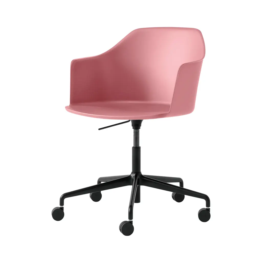 With convenience and utility in mind, &Tradition offers its sustainable molded armchair with automatic gas lift and a 5-star rolling base with castors. Designer Hee Welling's breakthrough take on Scandi molded seating is made from 100% recycled polypropylene, curving around the body and extending out along the sides for comfortable back support. The swivel base with castors is made from extruded aluminum, in a polished finish or black powder coat.