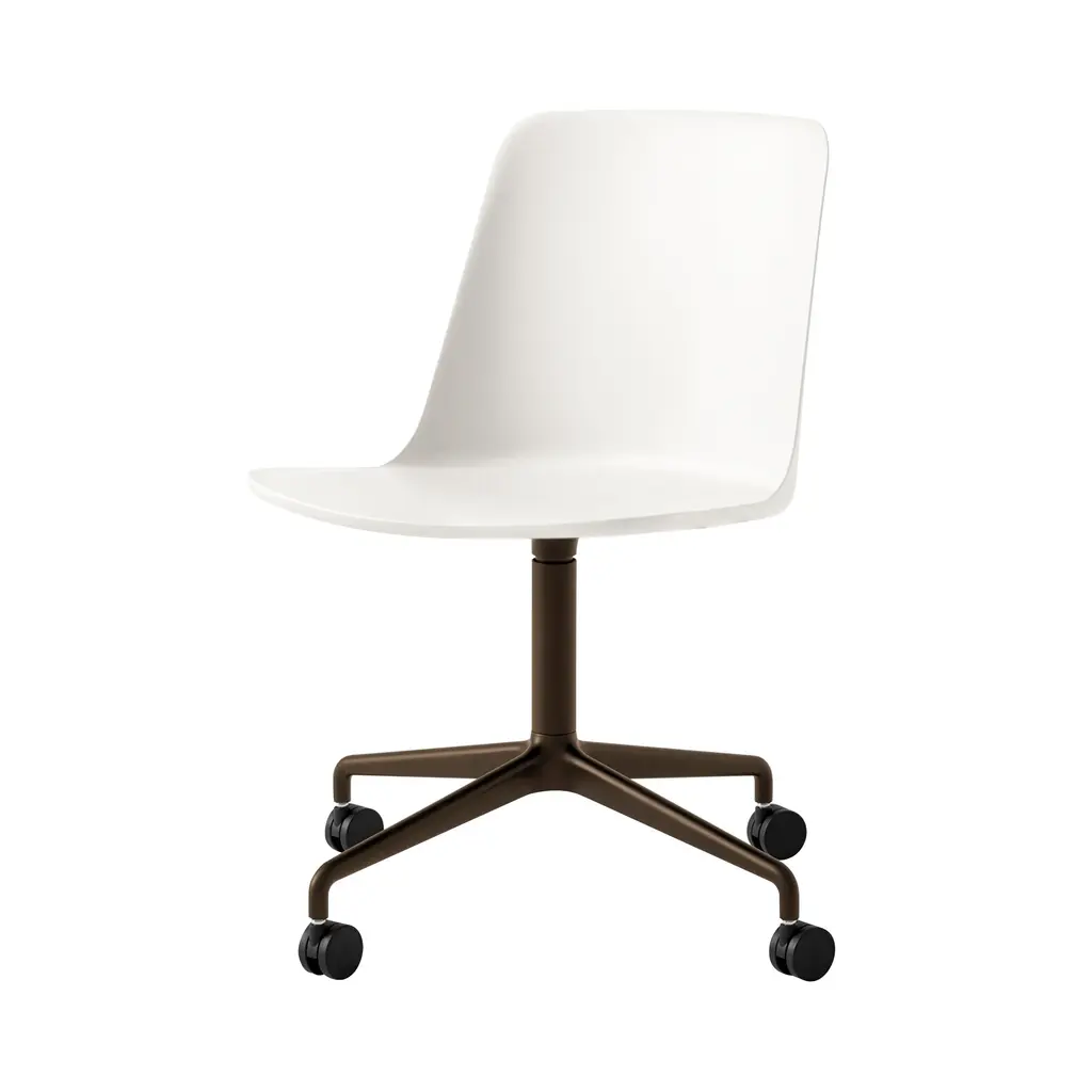 Designer Hee Welling’s eco-friendly Rely shell chair adds an easy-moving version on a swivel base with mobile castors. Reconceived in a 100 percent recycled plastic composite, the dated take on classic Scandinavian ergonomic seating is available in a range of refined colorways. The extruded aluminium swivel base with castors is available in a choice of polished, bronzed or black powder-coated finish.