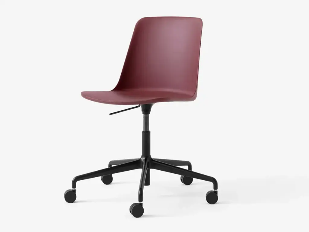 Designer Hee Welling’s eco-friendly Rely shell chair adds an easy-moving version on a swivel base with mobile castors. Reconceived in a 100 percent recycled plastic composite, the dated take on classic Scandinavian ergonomic seating is available in a range of refined colorways. The extruded aluminium swivel base with castors is available in a choice of polished, bronzed or black powder-coated finish.