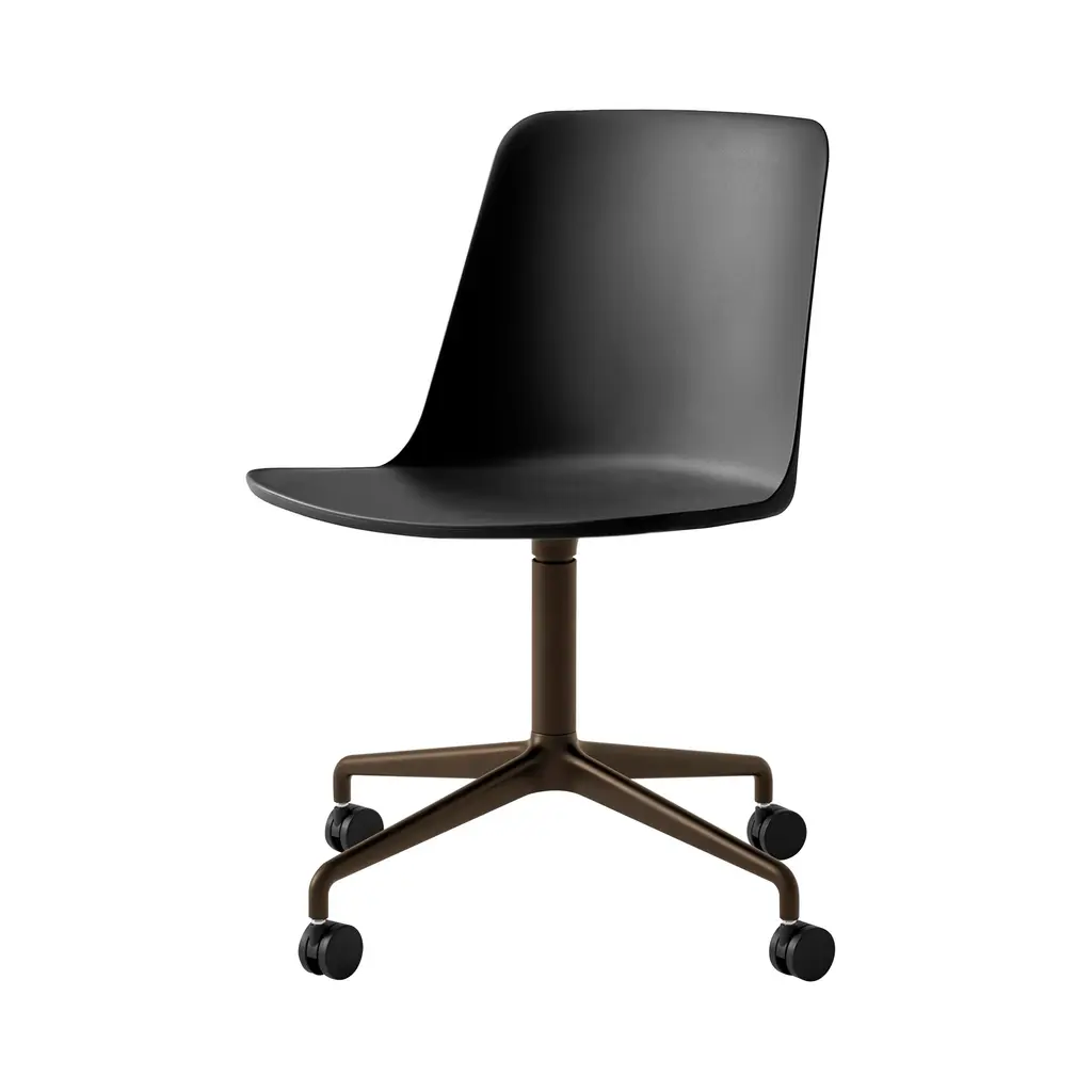 Designer Hee Welling’s eco-friendly Rely shell chair adds an easy-moving version on a swivel base with mobile castors. Reconceived in a 100 percent recycled plastic composite, the dated take on classic Scandinavian ergonomic seating is available in a range of refined colorways. The extruded aluminium swivel base with castors is available in a choice of polished, bronzed or black powder-coated finish.