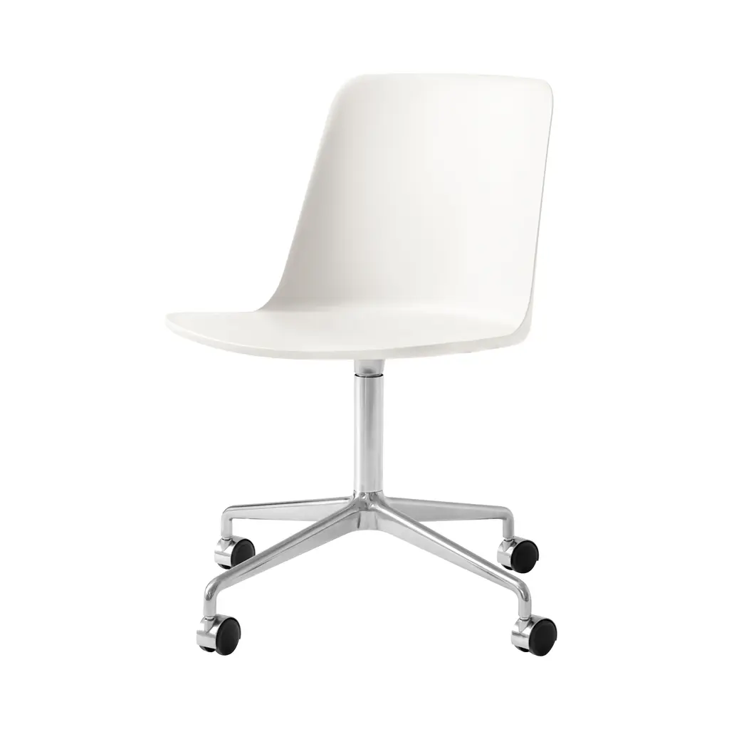 Designer Hee Welling’s eco-friendly Rely shell chair adds an easy-moving version on a swivel base with mobile castors. Reconceived in a 100 percent recycled plastic composite, the dated take on classic Scandinavian ergonomic seating is available in a range of refined colorways. The extruded aluminium swivel base with castors is available in a choice of polished, bronzed or black powder-coated finish.