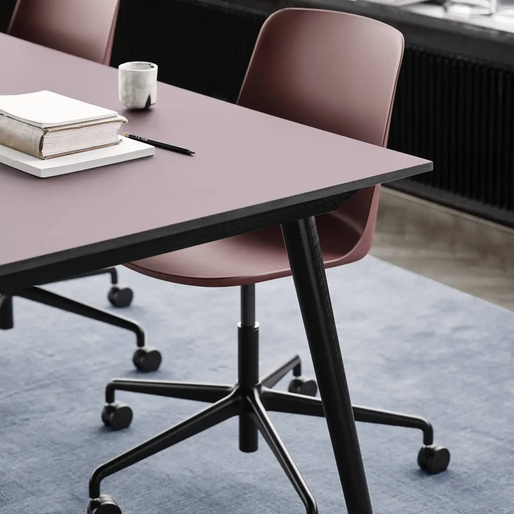 With a swivel function and roll-about base, &Tradition expands on Rely, its updated shell chair crafted from 100% recycled plastic. Danish designer Hee Welling’s eco-friendly version of the molded classic retains its ergonomic comfort and iconic curved silhouette. Available in a range of contemporary colors, the chair features automatic gaslift height adjustment and a sturdy 5-star aluminum swivel base with matching castors.