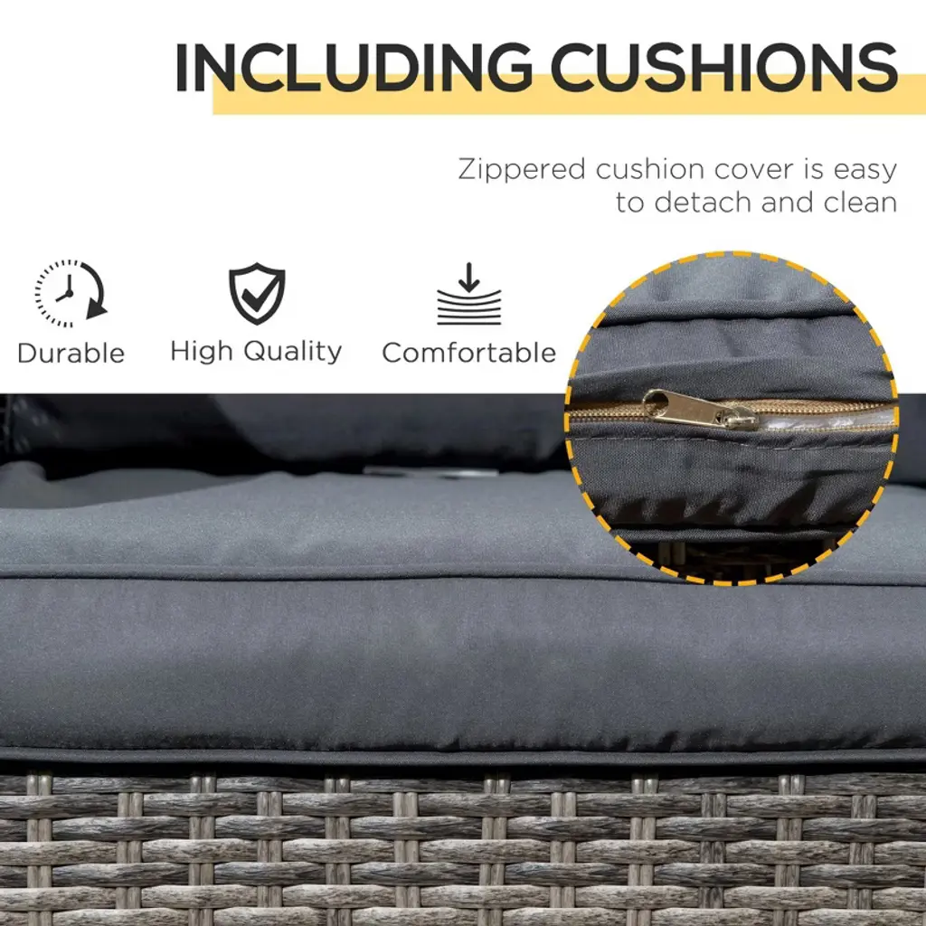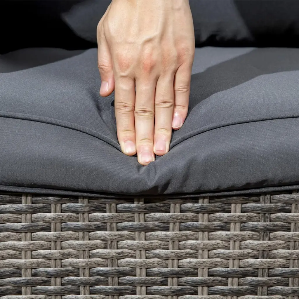 Introducing our exclusive three-piece patio furniture set, designed to elevate your outdoor relaxation experience. This set includes two swivel rockers for you and a friend, paired with a durable outdoor coffee table, perfect for sharing. Embrace the comfort and style of our hand-woven, water-resistant polyethylene set, featuring a heavy-duty powder-coated steel frame and tempered glass table top for easy maintenance. Our thick tufted cushions are not only comfortable but also easy to clean with removable zippered covers. Ideal for dining, drinks, or games, this set is a must-have for any outdoor space. With a weight capacity of 352 lbs. per chair and 110 lbs. for the table, this set is built to last. Experience the Resenkos difference and transform your patio into a serene retreat. Package includes: 2 x Swivel Rocker Chair, 1 x Side Table, 2 x Seat Cushion, 2 x Back Cushion, 1 x Assembly Manual. Color: Mixed Gray Rattan, Gray Fabric. Materials: Steel, Polyester, PE Rattan. Chair Dimensions: 28.25" W x 30.75" D x 36.25" H. Seat Size: 21.25" W x 23.5" D. Seat Height: 14.25" H. Coffee Table Dimensions: 18" W x 18" D x 18" H. Chair Weight Capacity: 352 lbs. Table Weight Capacity: 110 lbs. Item Label: 863-113V00GG.