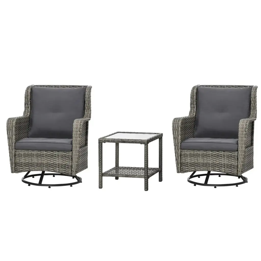 Resenkos 3-piece Patio Furniture Set, A Swivel Rocker, Pe Rattan, Gray