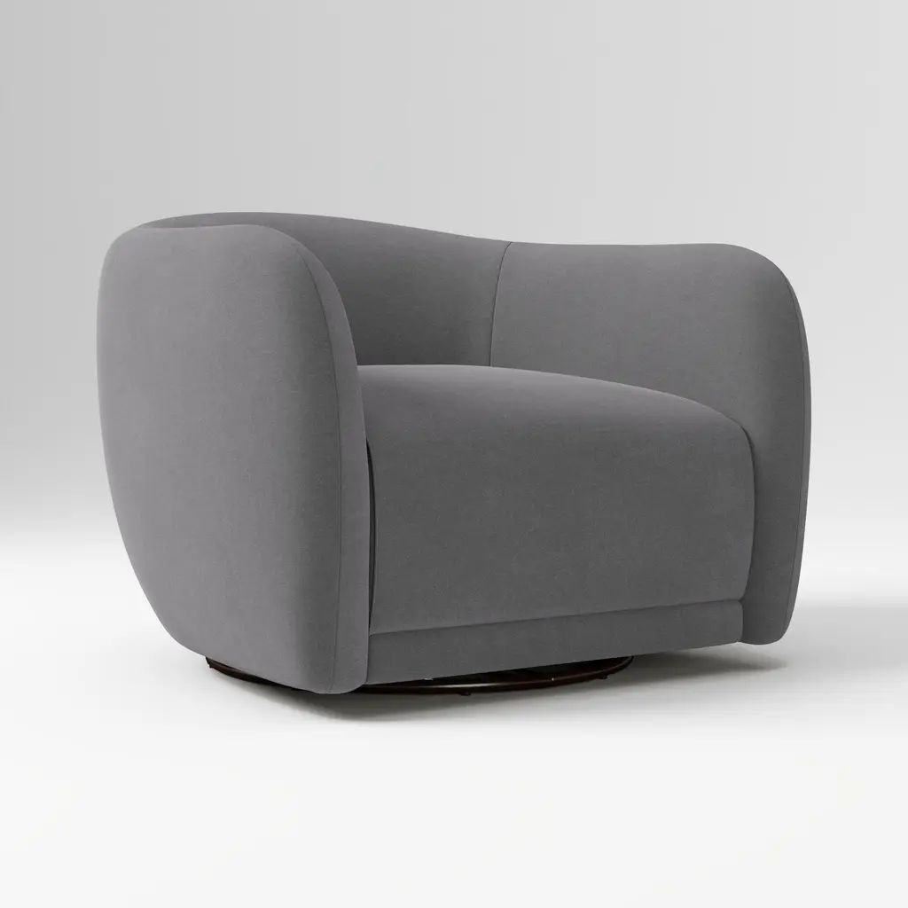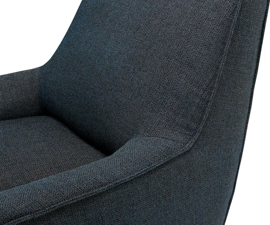 Cool contemporary style meets incredible comfort in the Rost Swivel Chair. The supportive back flows to the low, wide arms and cushioned seat. Plush upholstery displays a woven pattern outlined with piping detail that together, gives texture and dimension to this piece, which further adds to the visual appeal. The hidden metal swivel base provides stability plus the ability to turn 360 degrees and not miss a moment of the conversation or entertainment going on in your living space. This unique seat welcomes you to relax and is sure to become your favorite go-to spot.
