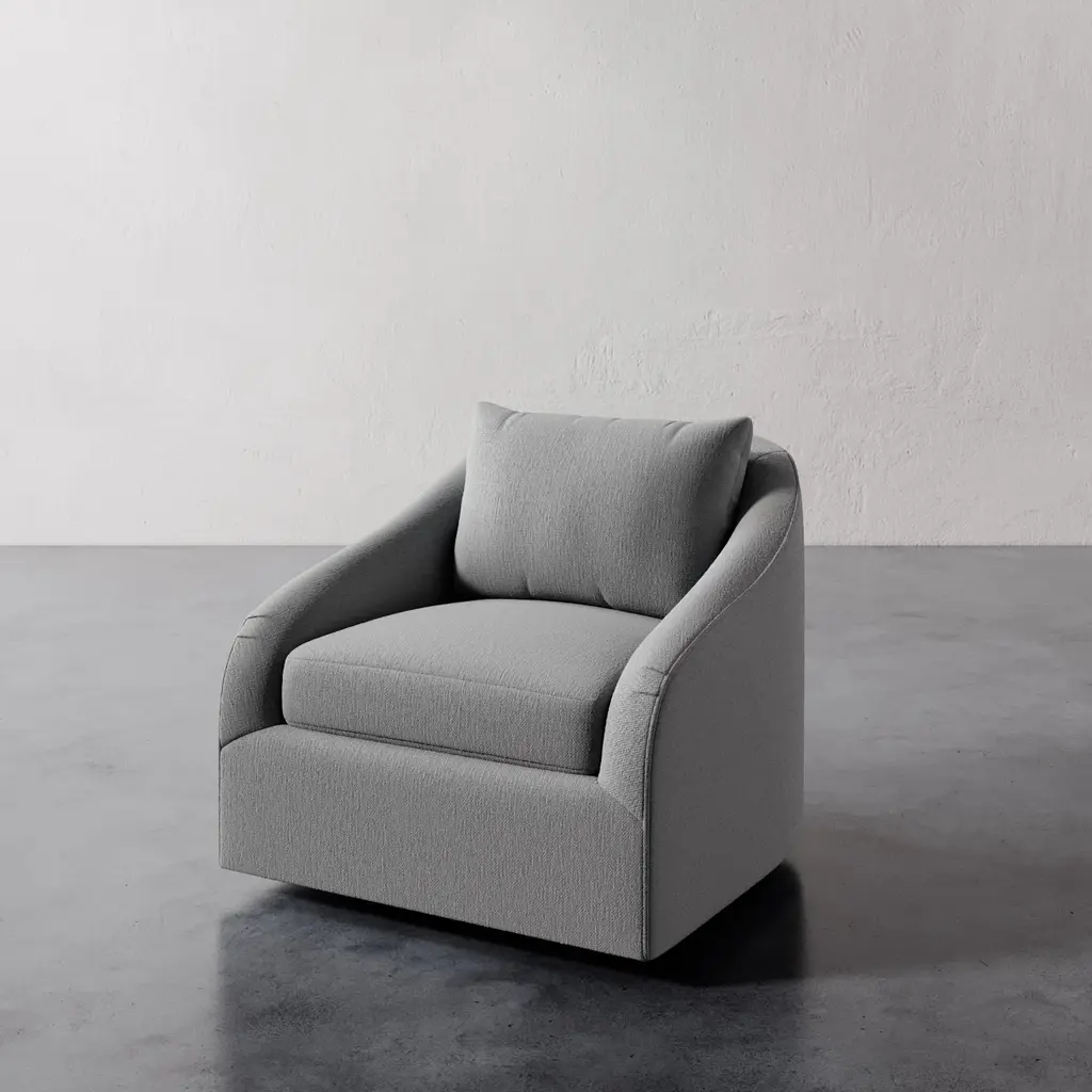 The Rousseau Swivel Chair from Lemieux et Cie is a study in quiet elegance, its graceful lines and sculptural silhouette evoking the refined restraint of 1940s French design. The subtly sloped arms lend a soft curvature, recalling the enveloping sophistication found in the interiors of Chanel’s Rue Cambon apartment. Made-to-order in a variety of luxurious fabrics, its tailored form feels both grounded and ethereal—a perfect balance of comfort and couture. With an understated yet distinct presence, the Rousseau Chair invites a timeless allure into any space, seamlessly bridging past and present.The Rousseau Swivel Chair is handmade by skilled artisans in North Carolina.
