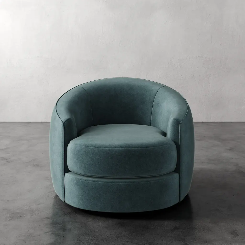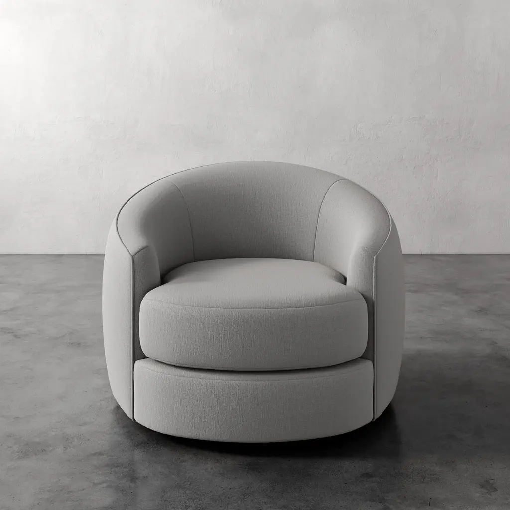 The Rulmann Swivel Chair embodies the collection's ethos of mid-century organic modernism into a singular, sculptural seat. With a grounded base and fluid 360° movement, the Rulmann Swivel draws inspiration from the legacy of Kagan, Royère, and Noguchi, where motion and form coalesce.
