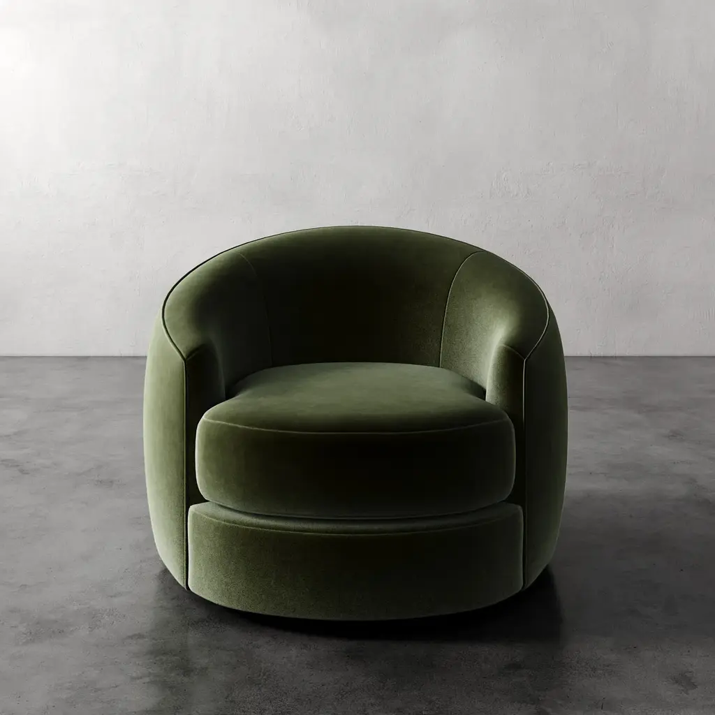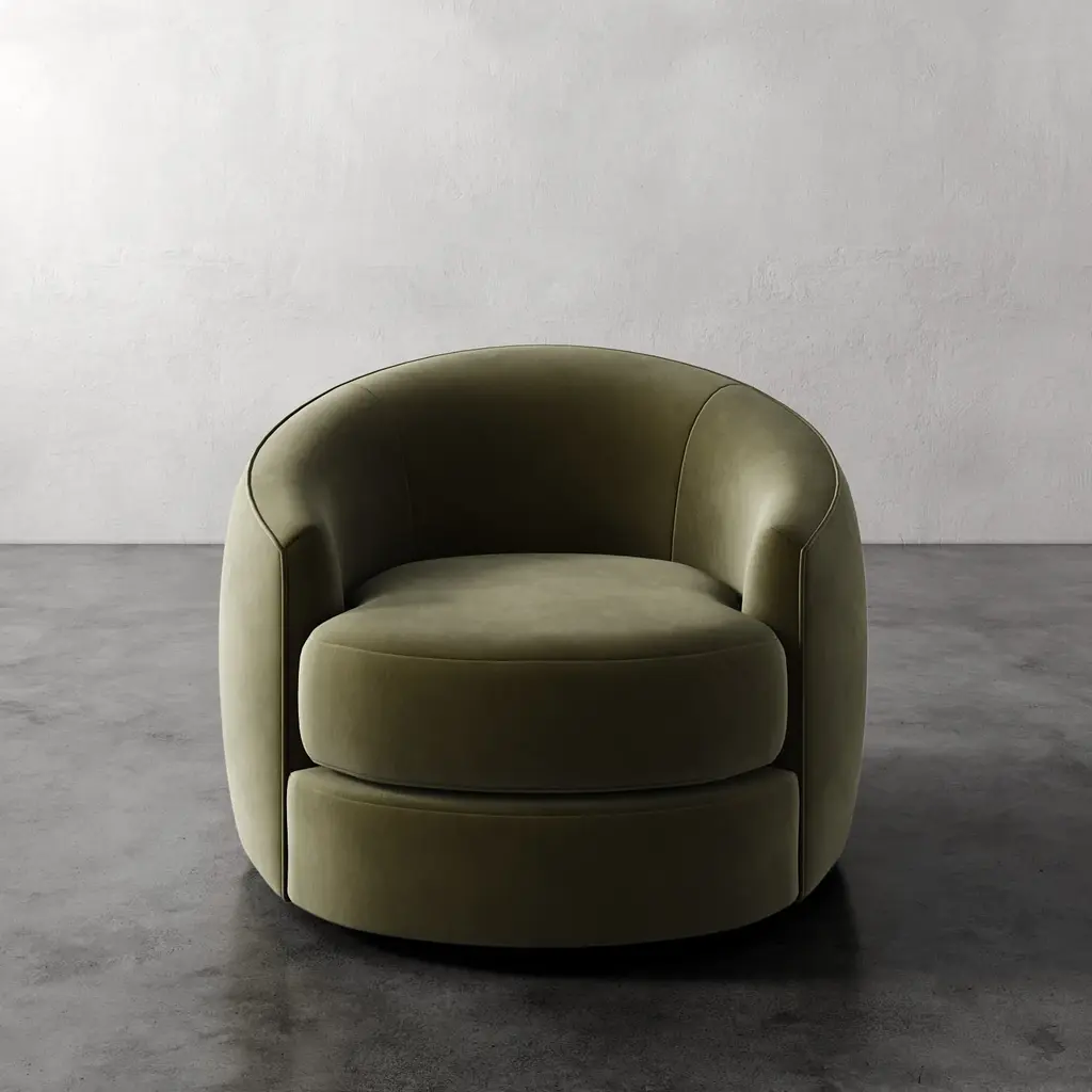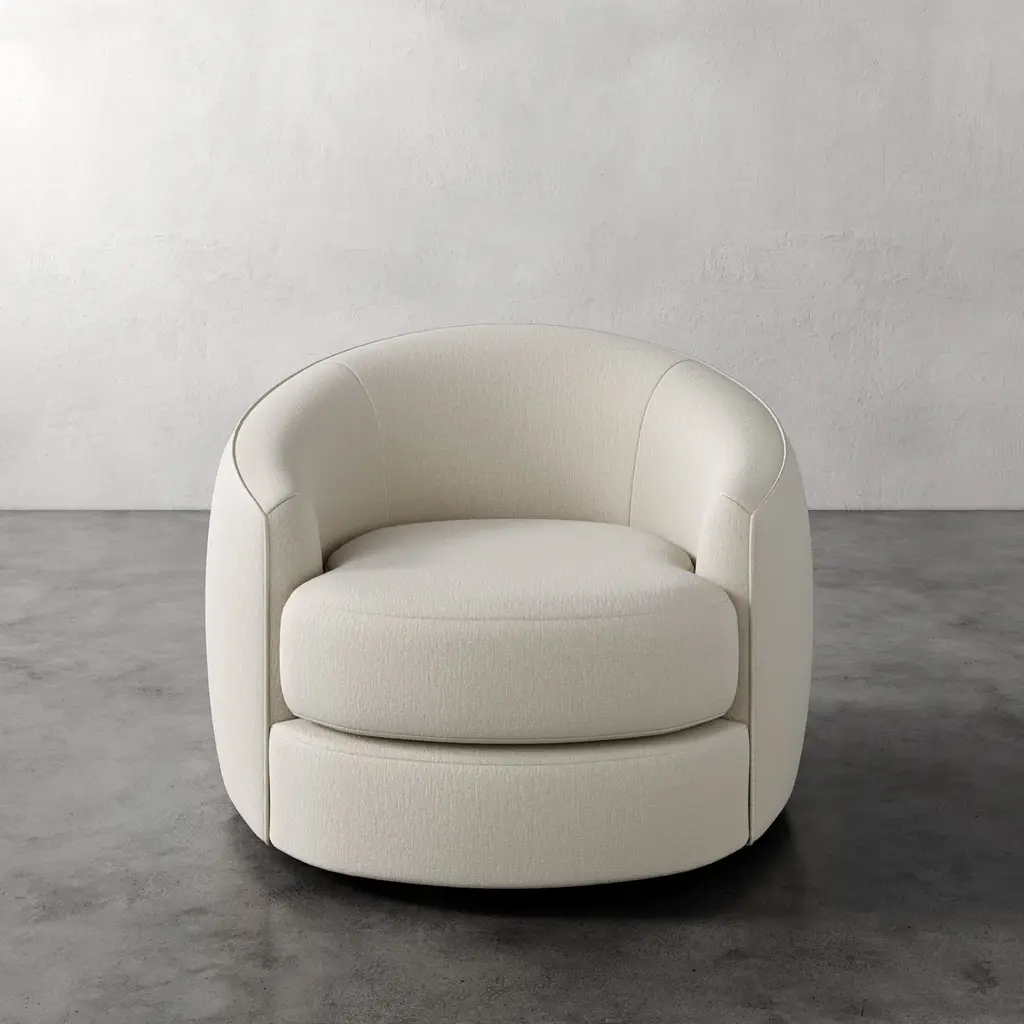 The Rulmann Swivel Chair embodies the collection's ethos of mid-century organic modernism into a singular, sculptural seat. With a grounded base and fluid 360° movement, the Rulmann Swivel draws inspiration from the legacy of Kagan, Royère, and Noguchi, where motion and form coalesce.