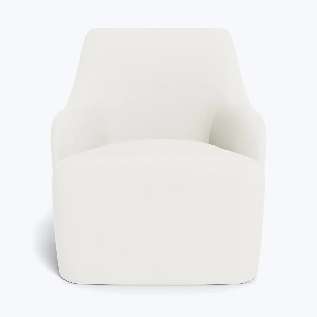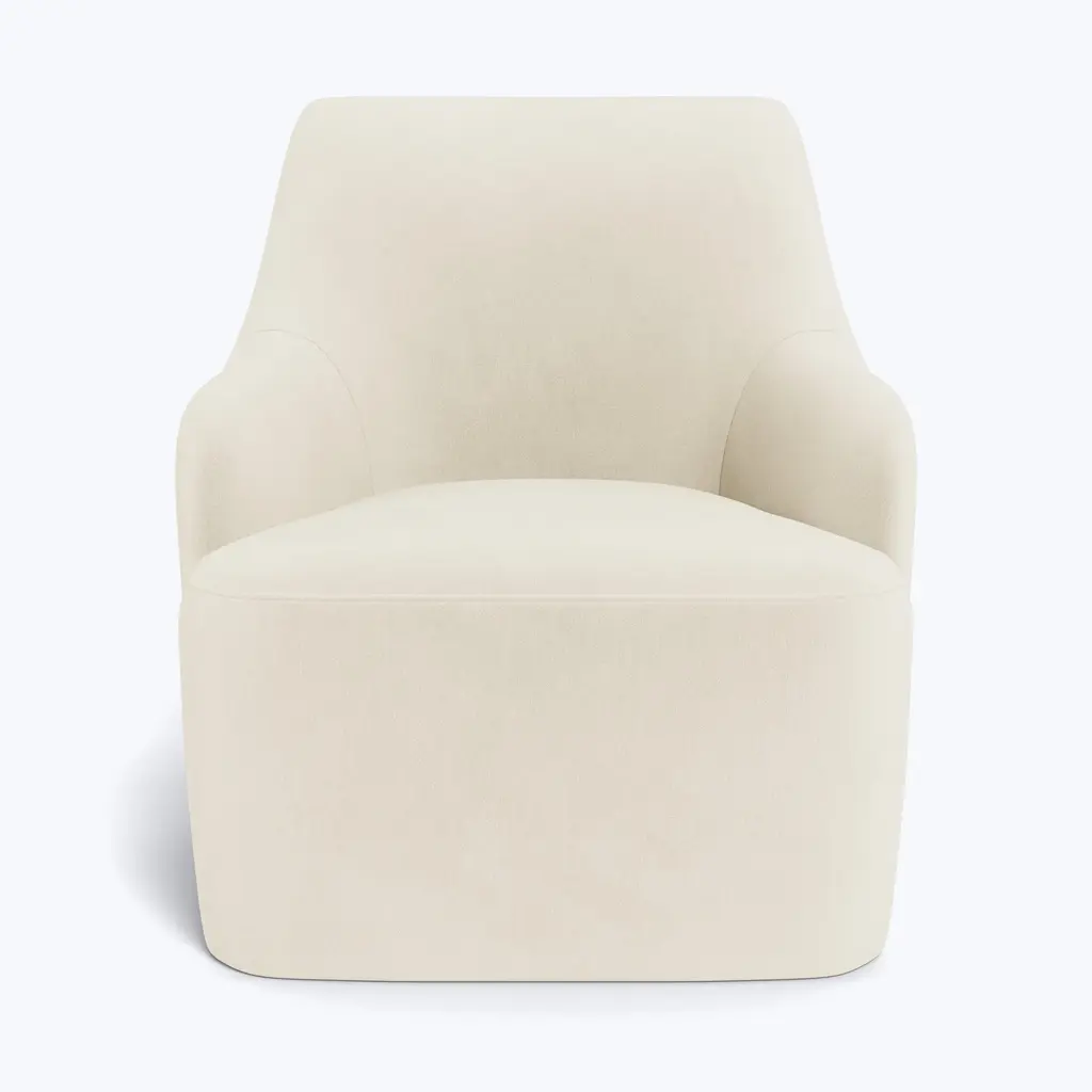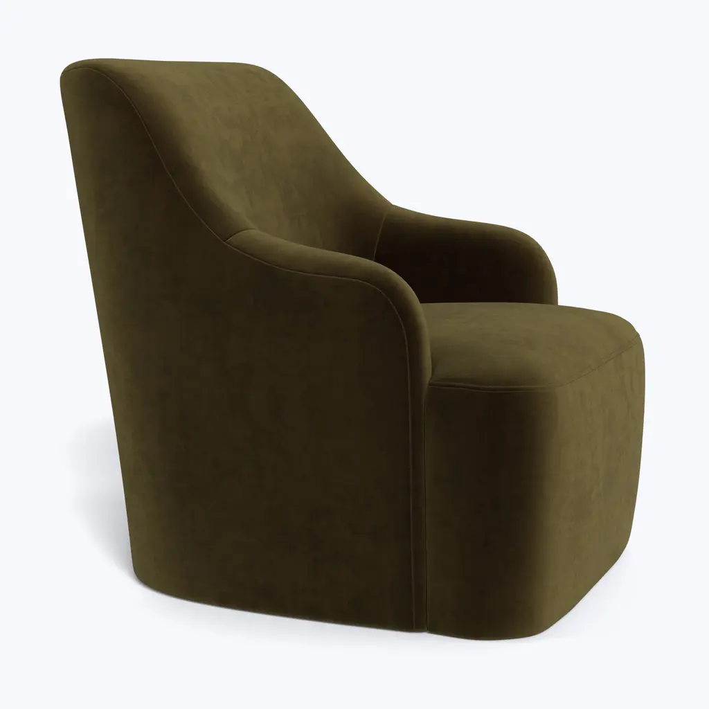 Relax in refined luxury with the Saratoga Swivel Chair, exclusively from ABC Carpet & Home. This elegant chair features a graceful curved silhouette and a modern swivel base, offering both comfort and versatility. Whether you're enjoying a good book, relaxing after a long day, or simply taking a moment for yourself, the Saratoga Swivel Chair brings a sophisticated and inviting touch to any living space. Crafted with a sustainably sourced Goodwood frame, the Saratoga Swivel Chair is as eco-conscious as it is stylish. The high-quality materials and craftsmanship ensure durability, while the Goodwood frame reflects a commitment to environmental responsibility. Available in a wide range of fabric options, including luxurious velvets, soft linens, and performance blends, you can personalize this chair to suit your home’s unique style. The Saratoga Swivel Chair offers more than just aesthetic appeal. Its tight seat and comfy seat provide the perfect spot to curl up and relax, making it a cozy addition to any room. The swivel function adds a layer of functionality, allowing you to easily turn and adjust your seating position without sacrificing comfort. Whether placed in a bedroom, living room, or reading nook, the Saratoga Swivel Chair delivers a luxurious seating experience that combines timeless style with modern convenience. With its elegant design and exceptional comfort, the Saratoga Swivel Chair is the ideal choice for those who appreciate both beauty and functionality in their furniture. Handcrafted to order and delivered to your home within 8-10 weeks, this chair brings lasting elegance and comfort to your space, offering a perfect blend of style, sustainability, and comfort. Experience the charm and versatility of the Saratoga Swivel Chair and create a space that reflects your sophisticated lifestyle.