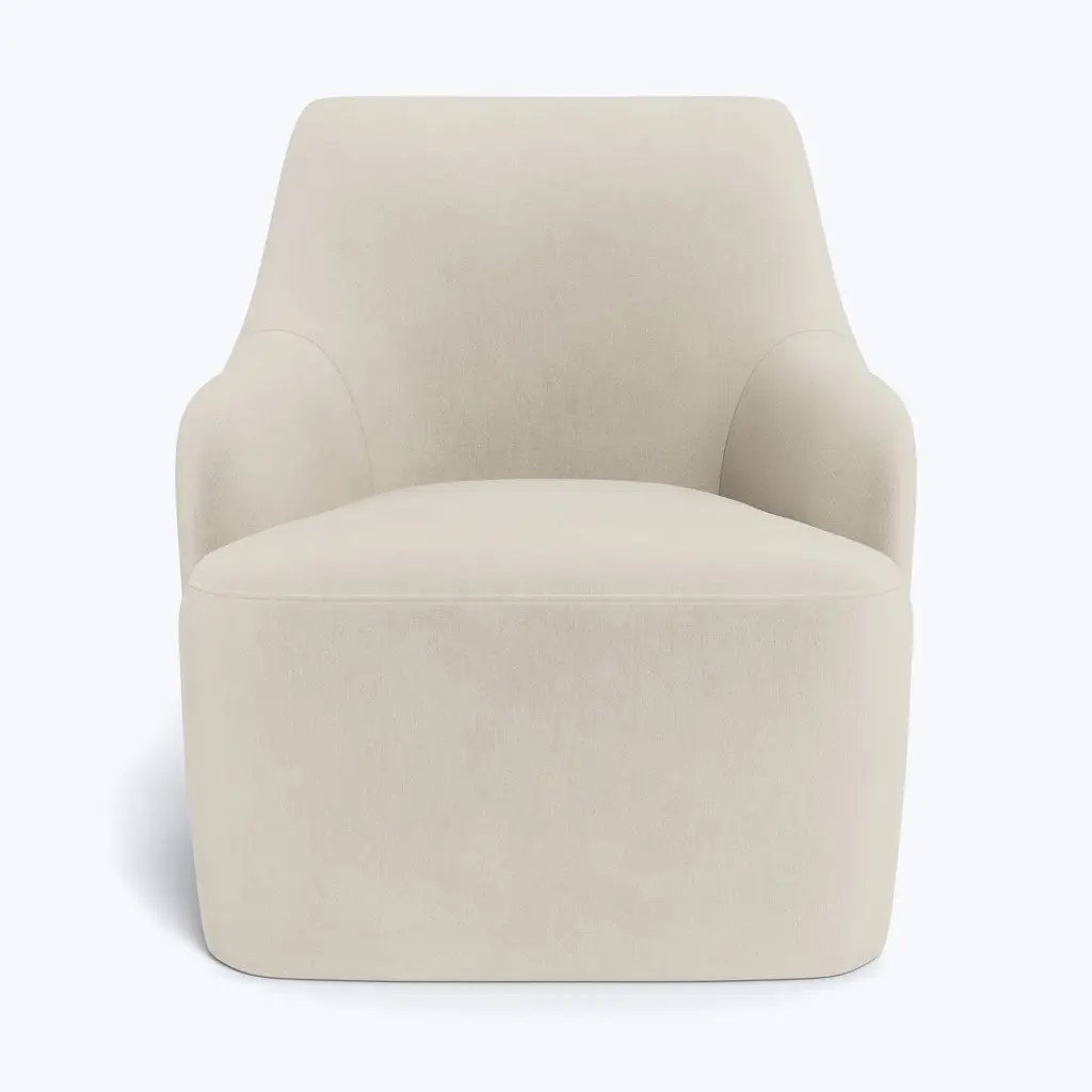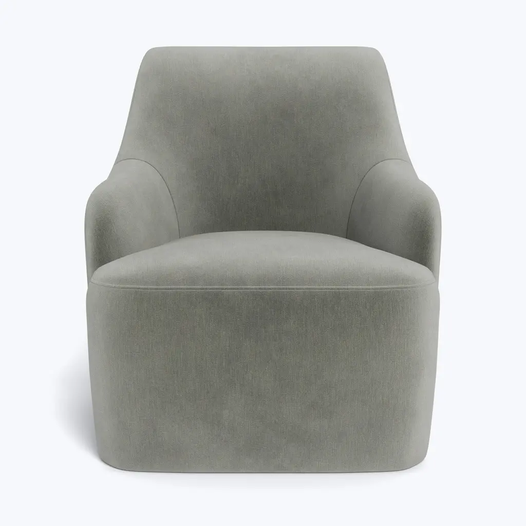 Relax in refined luxury with the Saratoga Swivel Chair, exclusively from ABC Carpet & Home. This elegant chair features a graceful curved silhouette and a modern swivel base, offering both comfort and versatility. Whether you're enjoying a good book, relaxing after a long day, or simply taking a moment for yourself, the Saratoga Swivel Chair brings a sophisticated and inviting touch to any living space. Crafted with a sustainably sourced Goodwood frame, the Saratoga Swivel Chair is as eco-conscious as it is stylish. The high-quality materials and craftsmanship ensure durability, while the Goodwood frame reflects a commitment to environmental responsibility. Available in a wide range of fabric options, including luxurious velvets, soft linens, and performance blends, you can personalize this chair to suit your home’s unique style. The Saratoga Swivel Chair offers more than just aesthetic appeal. Its tight seat and comfy seat provide the perfect spot to curl up and relax, making it a cozy addition to any room. The swivel function adds a layer of functionality, allowing you to easily turn and adjust your seating position without sacrificing comfort. Whether placed in a bedroom, living room, or reading nook, the Saratoga Swivel Chair delivers a luxurious seating experience that combines timeless style with modern convenience. With its elegant design and exceptional comfort, the Saratoga Swivel Chair is the ideal choice for those who appreciate both beauty and functionality in their furniture. Handcrafted to order and delivered to your home within 8-10 weeks, this chair brings lasting elegance and comfort to your space, offering a perfect blend of style, sustainability, and comfort. Experience the charm and versatility of the Saratoga Swivel Chair and create a space that reflects your sophisticated lifestyle.