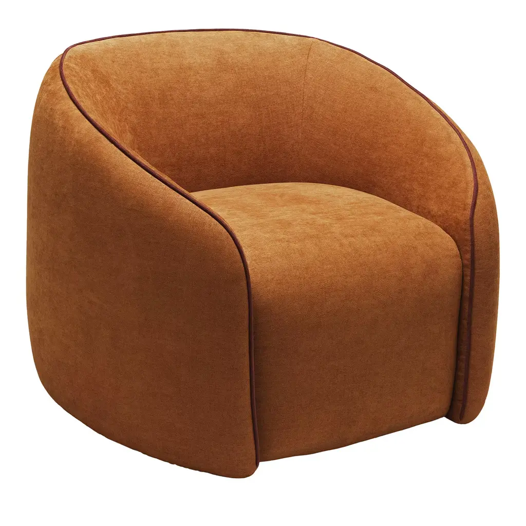 Chic and inviting, the Scout Swivel Chair features a classic barrel back but includes thick arms and a unique base silhouette. Welt trim along the edges of the upholstery add an extra level of elevation, while the swivel base makes this chair convenient for any entertaining space. Ships In 8-10 Weeks Tight back Tight seat As Shown Fabric: Diamond Orange If you choose to purchase COM, once you have placed your order a customer service rep will contact you regarding where to send your fabric. Please note that current lead time is 8-10 weeks once your fabric arrives at the factory, and if unused fabric is under 1.5 yards, it cannot be sent back to you.This product can be special ordered in additional fabrics, leathers, and cushion fillings. Click here to email us for for additional information about special ordering.This image is for illustrative purposes only. The colors shown are accurate within the constraints of lighting, photography, and the color accuracy of your screen.