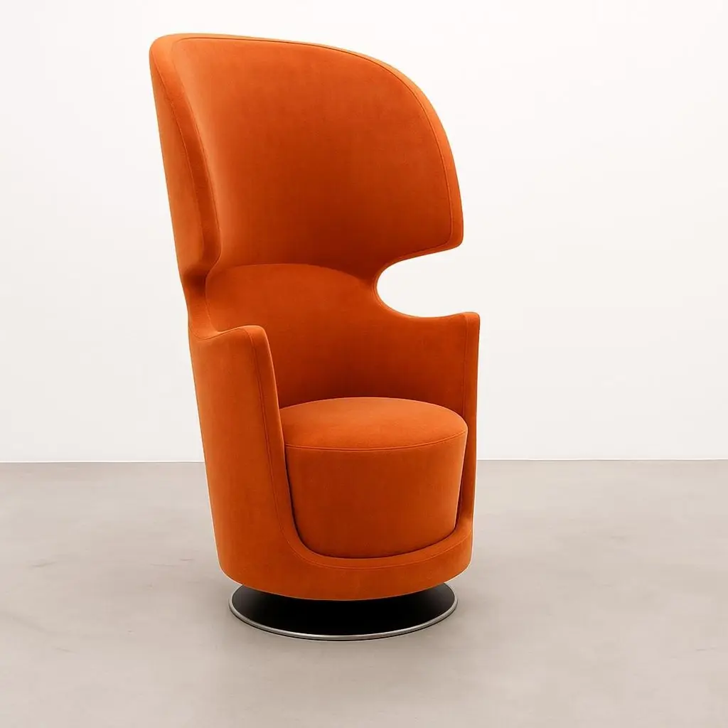 Sculptural High-Back Swivel Chair Upholstered In Rich Flamingo Orange Velvet