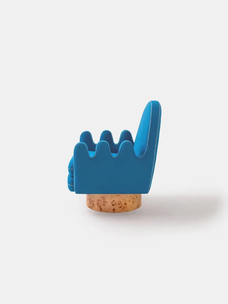 Semo Armchair With Blue Fabric And Polished Burl Wood