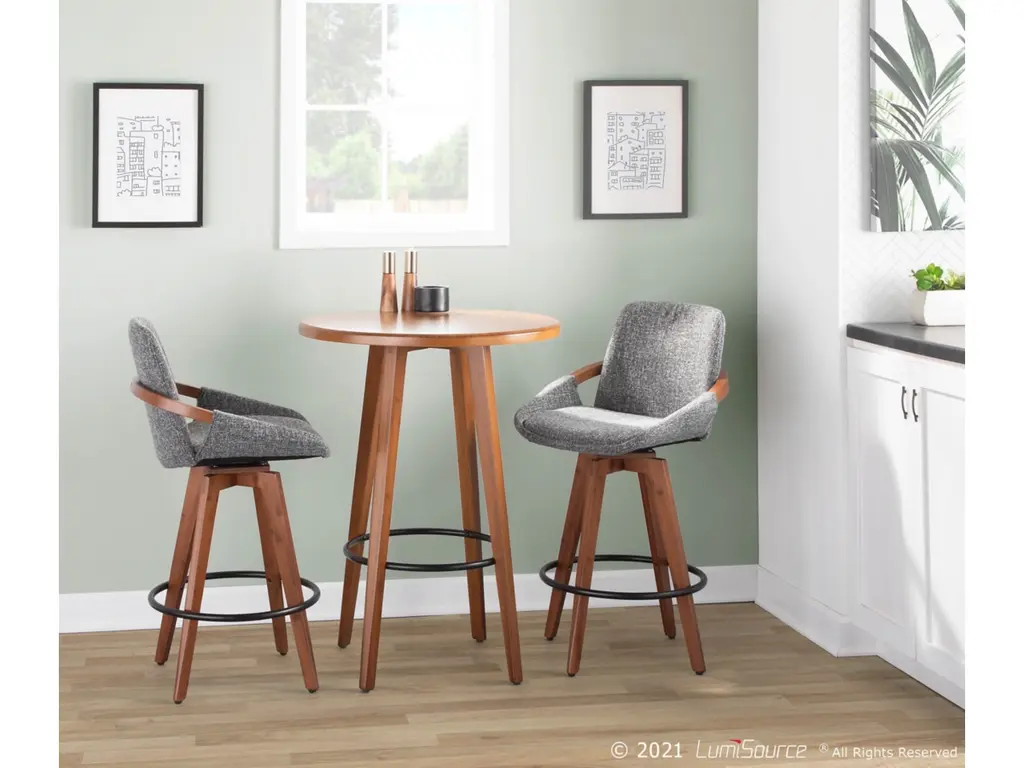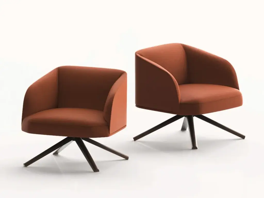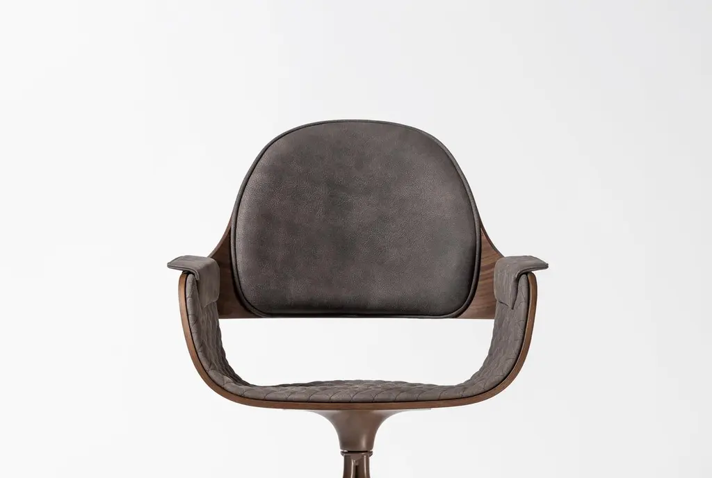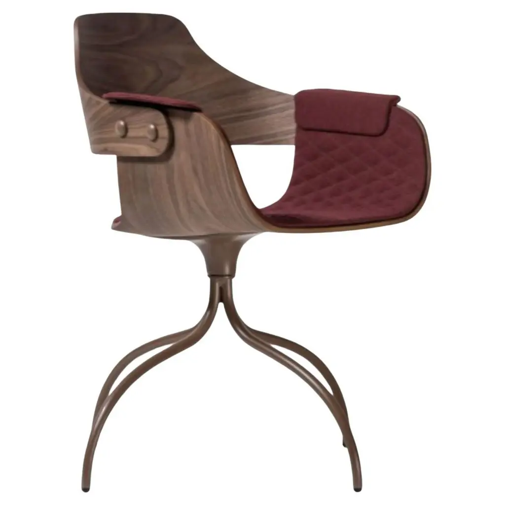 Set of 3 Swivel Showtime chair by Jaime Hayon Dimensions: D 65 x W 55 x H 86 cm Materials: Powder coated steel or aluminium structure. Legs, seat and backrest in plywood with exteriors in natural ash, walnut or ash stained black. Metallic decorative buttons. Seat cushion, interior seat cushion and backrest upholstered in different fabrics or leathers provided by BD.We have called it ‘Nude’ as we have taken the essential and added new legs and a more ergonomic backrest. The chair comes with five optional types of legs: wooden, metal, sled, swivel and wheels.In 1972, a group of young architects and designers from Barcelona created BD with the aim of producing and marketing furniture and other objects for our projects, with complete creative freedom and with a criterion that has turned out to be quite different from the norm at companies in the sector, regarding both the shape and function.