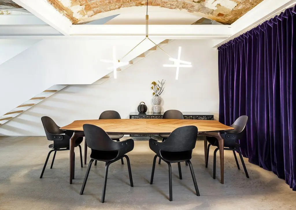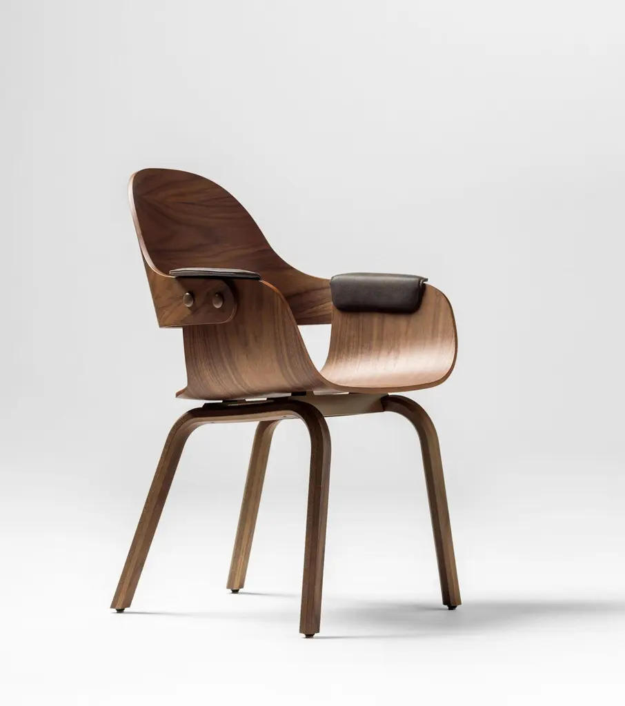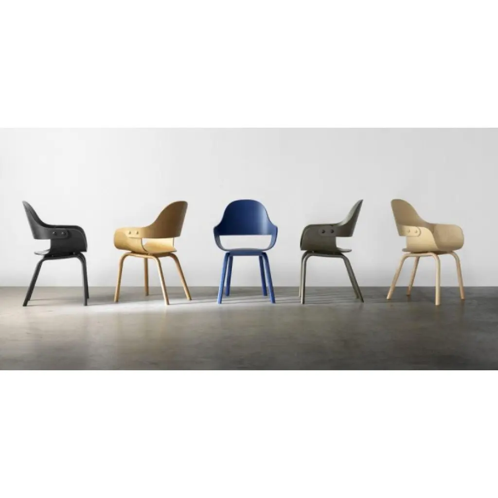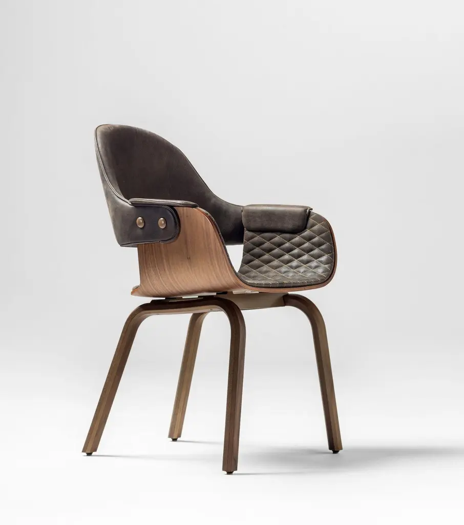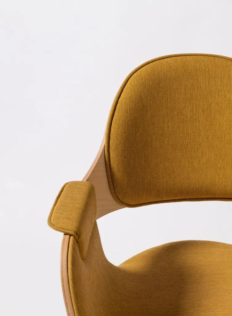 Set of 5 Showtime nude 4 legs chairs by Jaime HayonDimensions: D 55 x W 55 x H 86 cm Materials: Powder-coated steel or aluminum structure. Legs, seat, and backrest in plywood with exteriors in natural ash, walnut, or ash stained black. Metallic decorative buttons. Seat cushion, interior seat cushion, and backrest upholstered in different fabrics or leathers provided by BD.Available upholstered in different fabrics and in versions Showtime. We have called it ‘Nude’ as we have taken the essential and added new legs and a more ergonomic backrest. The chair comes with five optional types of legs: wooden, metal, sled, swivel, and wheels. The Showtime Nude Chair is simpler than the previous version but hasn’t lost any of its personality.In 1972, a group of young architects and designers from Barcelona created BD with the aim of producing and marketing furniture and other objects for our projects, with complete creative freedom and with a criterion that has turned out to be quite different from the norm at companies in the sector, regarding both the shape and function.