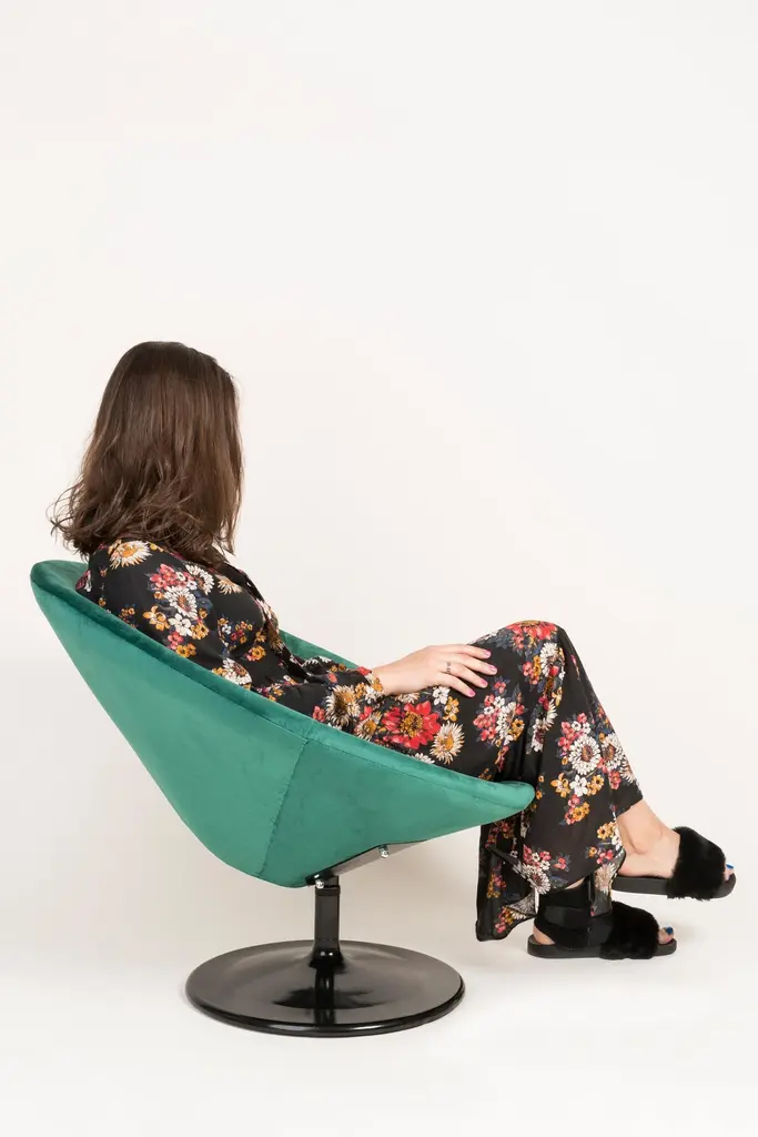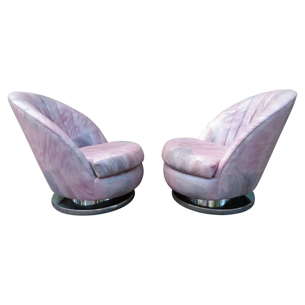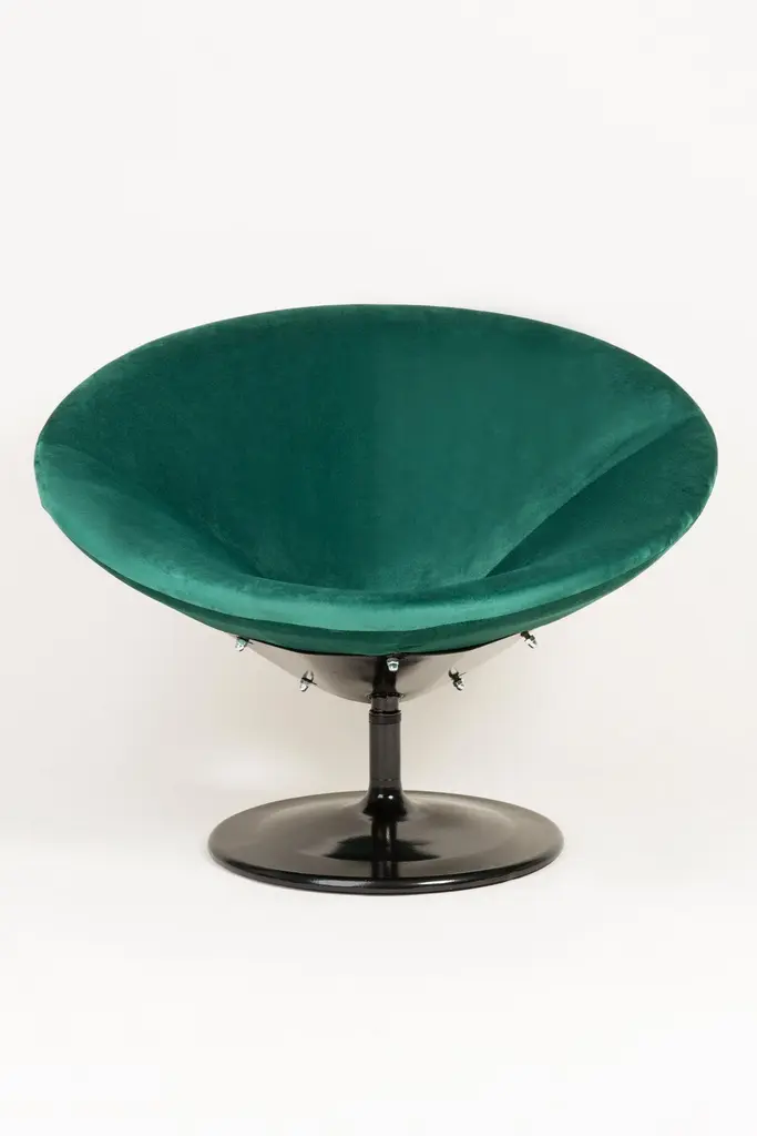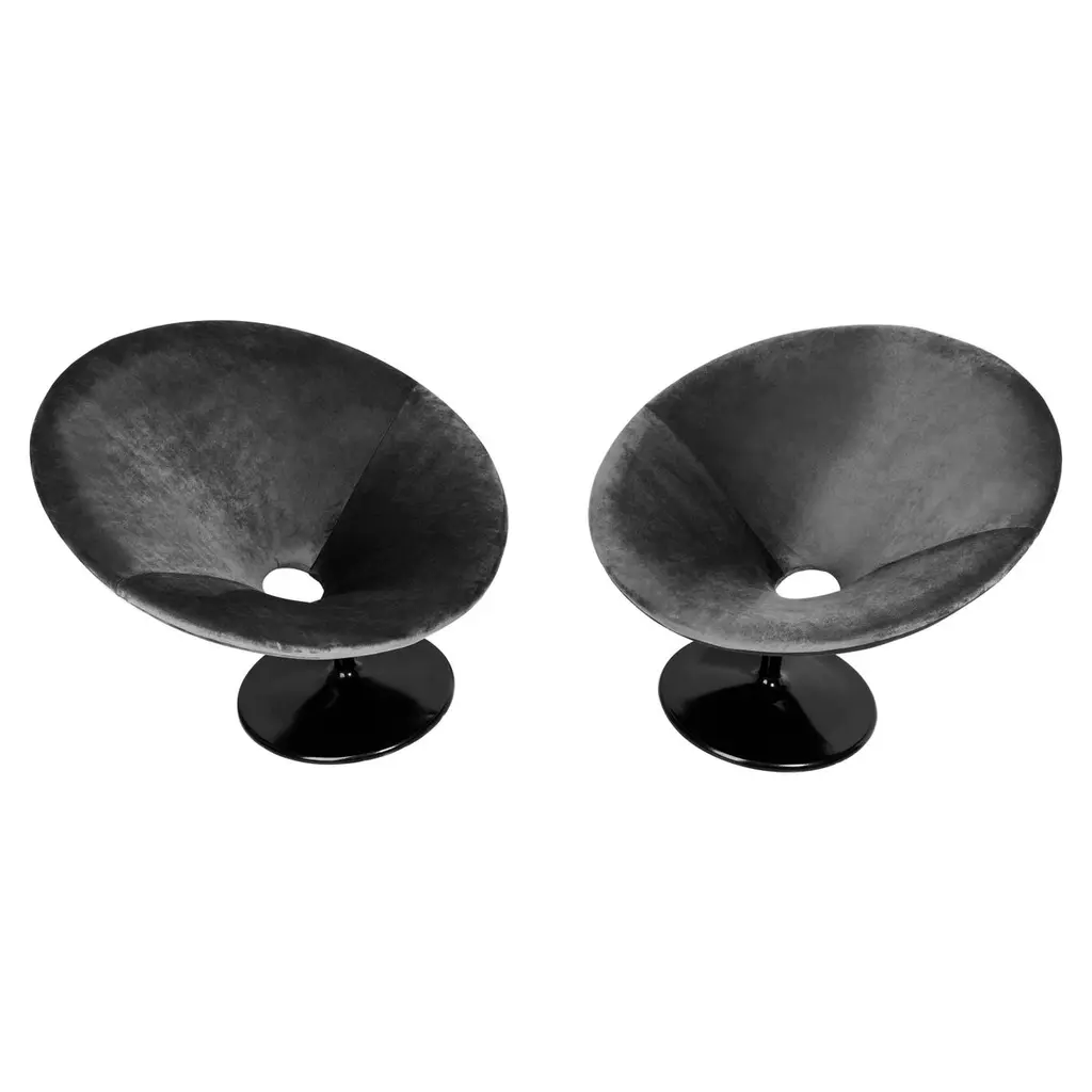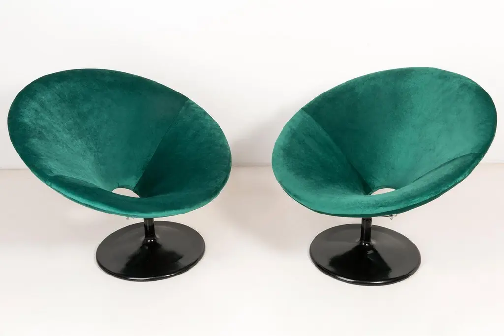 Set of two swivel armchairs from the 1970s, produced in the Silesian furniture factory in Swiebodzin - at the moment they are unique. Due to their dimensions, they perfectly blend in even in small apartments providing comfort and beautiful decoration. We can prepare this armchairs in a different color of upholstery and metal base.
