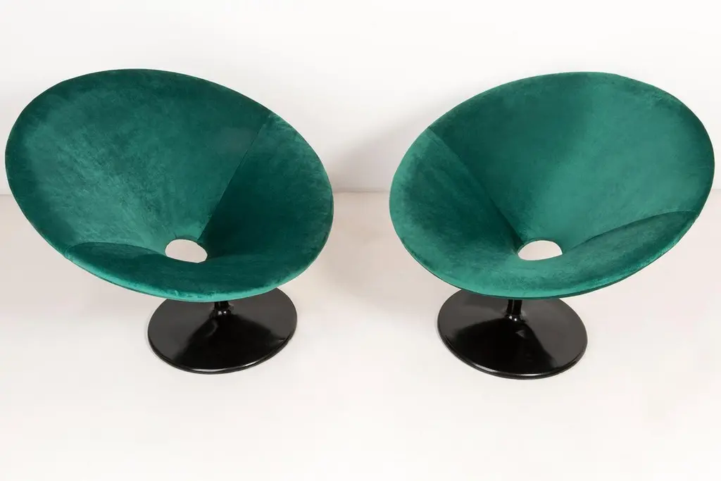 Set Of Two 20th Century Vintage Dark Green Swivel Armchairs, 1960s