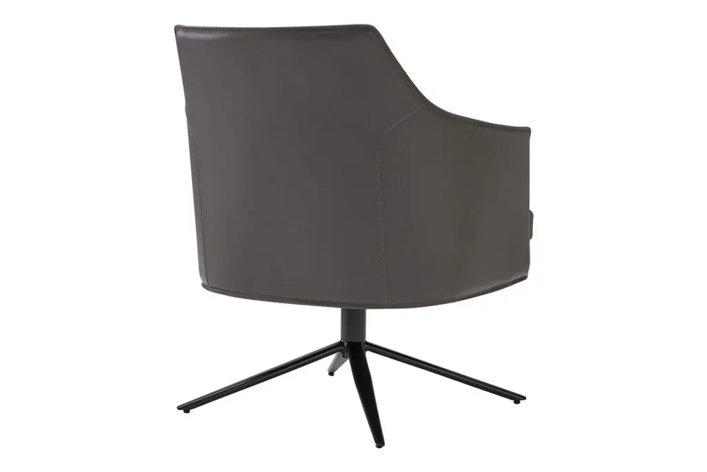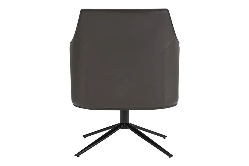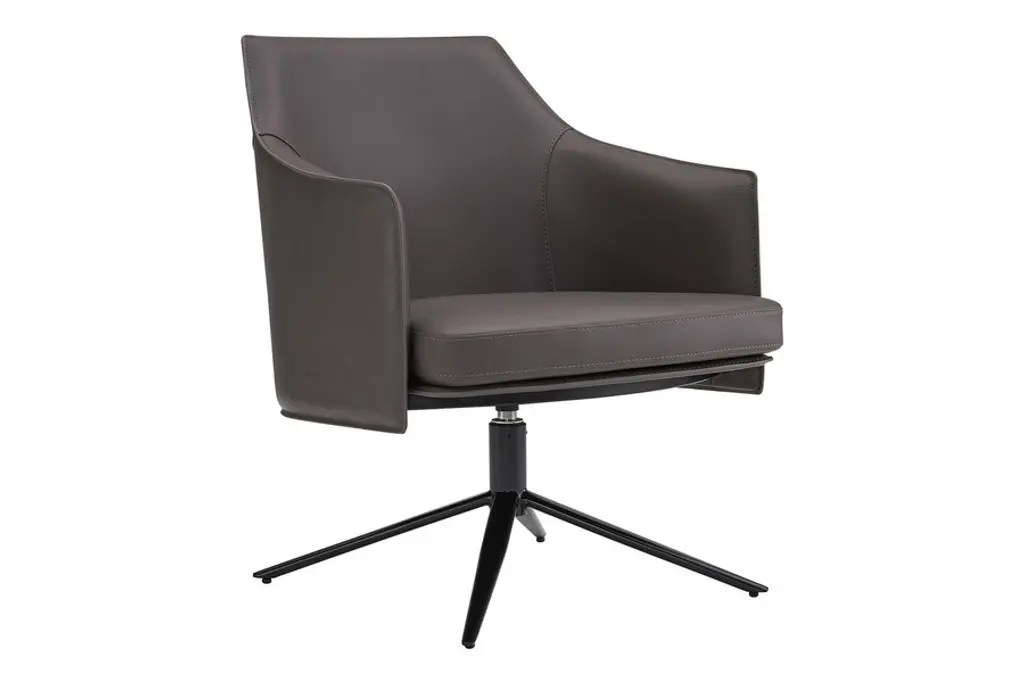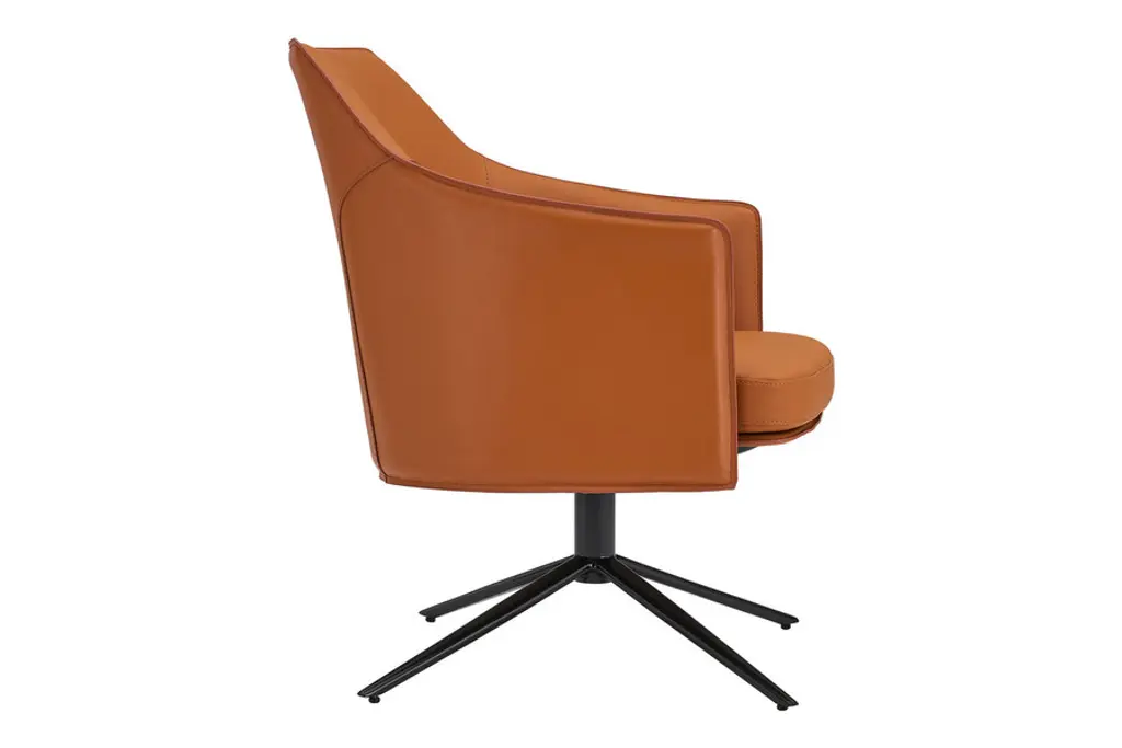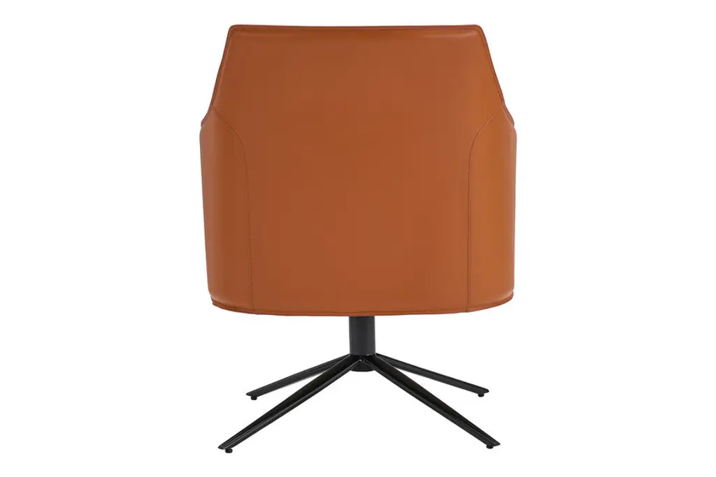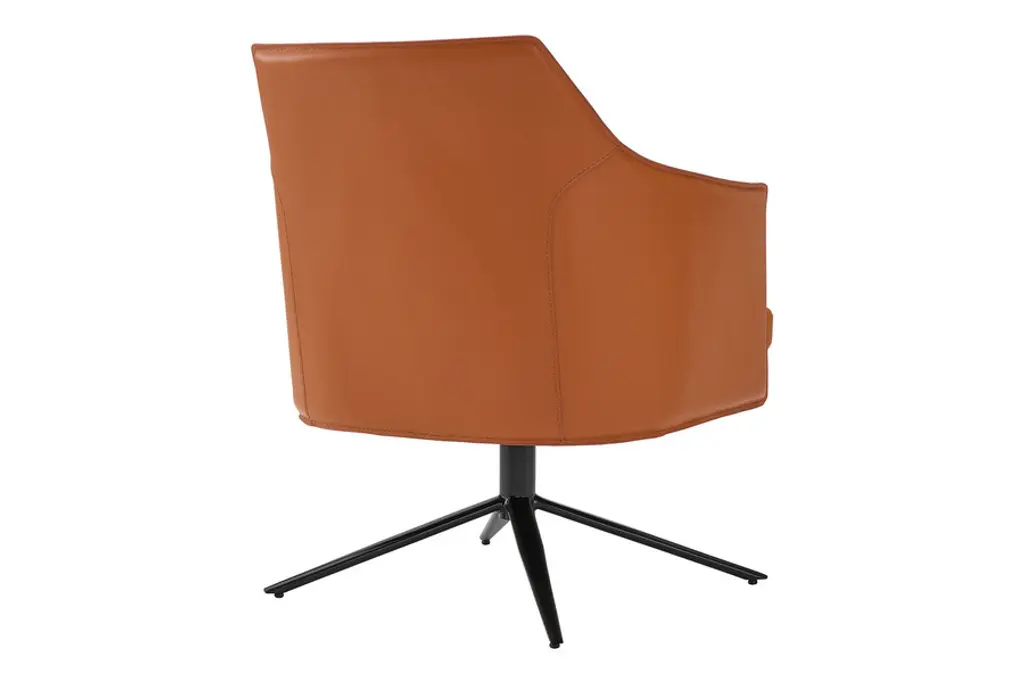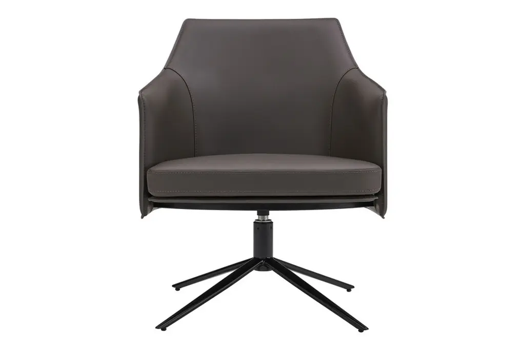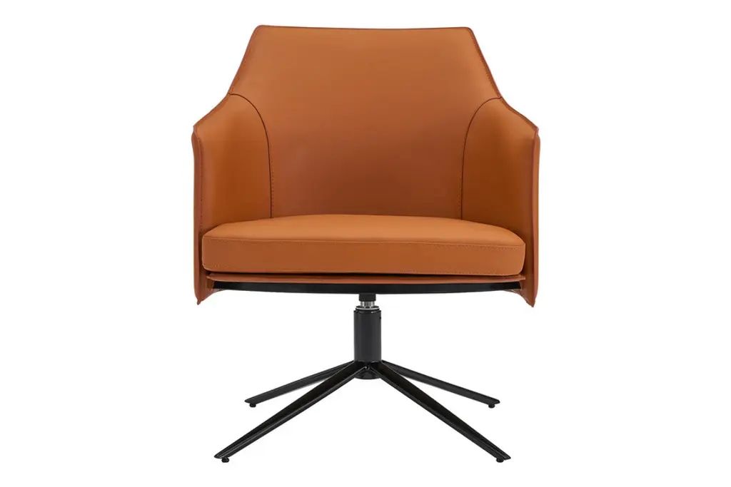 The Signa Lounge Chair is worth adding to your modern homes repertoire of hand-selected furnishings. It is a unique blend of new contemporary meets vintage Scandinavian style. Its sloped and arching arms seamlessly flow down from its curved backrest. Refined accent stitching defines its edges and along its upholstery emphasizing its ergonomic form. Its smooth combination of leatherette and regenerated leather upholstery covers comfortable and plushly padded cushioning. Its supported by powder coated steel base in a 3-pronged pedestal design for outstanding stability. Its auto return swivel functionality makes it useful for a variety of rooms, including your den, living room, bedroom and home office.