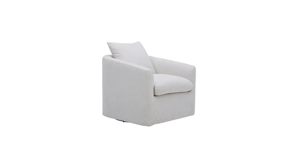 A timeless, cozy silhouette that lets you swing to face the action. This swivel chair boasts inviting curves and a host of practical features: soft and durable performance fabric, removable slipcovers that are easy to clean, and a smaller footprint to suit bedrooms and living rooms alike.