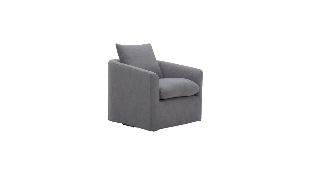 A timeless, cozy silhouette that lets you swing to face the action. This swivel chair boasts inviting curves and a host of practical features: soft and durable performance fabric, removable slipcovers that are easy to clean, and a smaller footprint to suit bedrooms and living rooms alike.