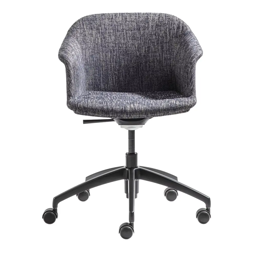 The Sinum Dining Chair with Swivel Base and Casters offers the ultimate in flexible seating for dynamic environments. Derived from the Latin word for "pocket," this sophisticated chair combines mobility with exceptional comfort through its signature curved pocket of padding that creates a personal comfort zone even in busy spaces. This most versatile iteration of the Sinum design features premium casters that enable effortless movement across various floor surfacesideal for adaptable dining environments, conference settings, or creative workspaces. The swivel functionality provides 360-degree rotation, while the streamlined black powder-coated aluminum and steel base maintains the chair's refined visual lightness. Designed by acclaimed Hamburg studio Hoffmann Kahleyss Design, the chair exemplifies the founders' expertise in creating furniture that balances aesthetic sophistication with practical functionality. The meticulously engineered internal structure combines metal and plywood framing with high-resilient polyurethane foam, ensuring lasting comfort during extended use. For dining spaces that benefit from arm support, consider exploring the Sinum Dining Armchair with the same swivel base and castor configuration for consistent design language with enhanced comfort options.
