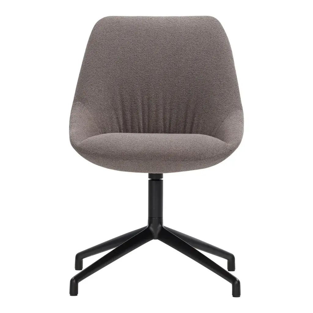 The Sinum Dining Chair with Swivel Base introduces fluid movement to sophisticated dining spaces. Taking its name from the Latin word for "pocket," this refined chair combines compact proportions with generous comfort through its distinctive curved pocket of padding that embraces the sitter. What distinguishes this version is its elegant swivel base in black powder-coated aluminum and steel, which adds a dynamic quality to the seating experience. The optional return mechanism ensures chairs remain properly positioned when not in usean especially valuable feature in hospitality environments and conference settings where presentation matters. Hamburg-based designers Birgit Hoffmann and Christoph Kahleyss have created a versatile piece that transcends traditional dining functionality. The chair's slightly tilted backrest and carefully engineered internal structurefeaturing high-resilient, variable-density polyurethane foamprovide exceptional support for both active and relaxed seating positions during extended gatherings. For spaces with different requirements, the Sinum collection offers additional options, including the armchair version of this swivel base design or models with casters for maximum mobility, while maintaining the same refined aesthetic and comfort characteristics across the entire range.